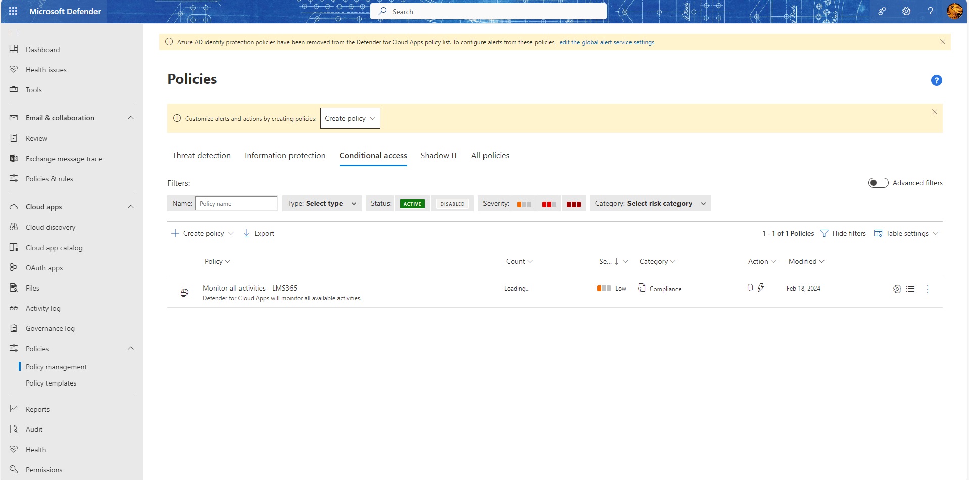 Um dies zu überprüfen, gehen Sie zu Richtlinien > Richtlinienverwaltung > Bedingter Zugriff.