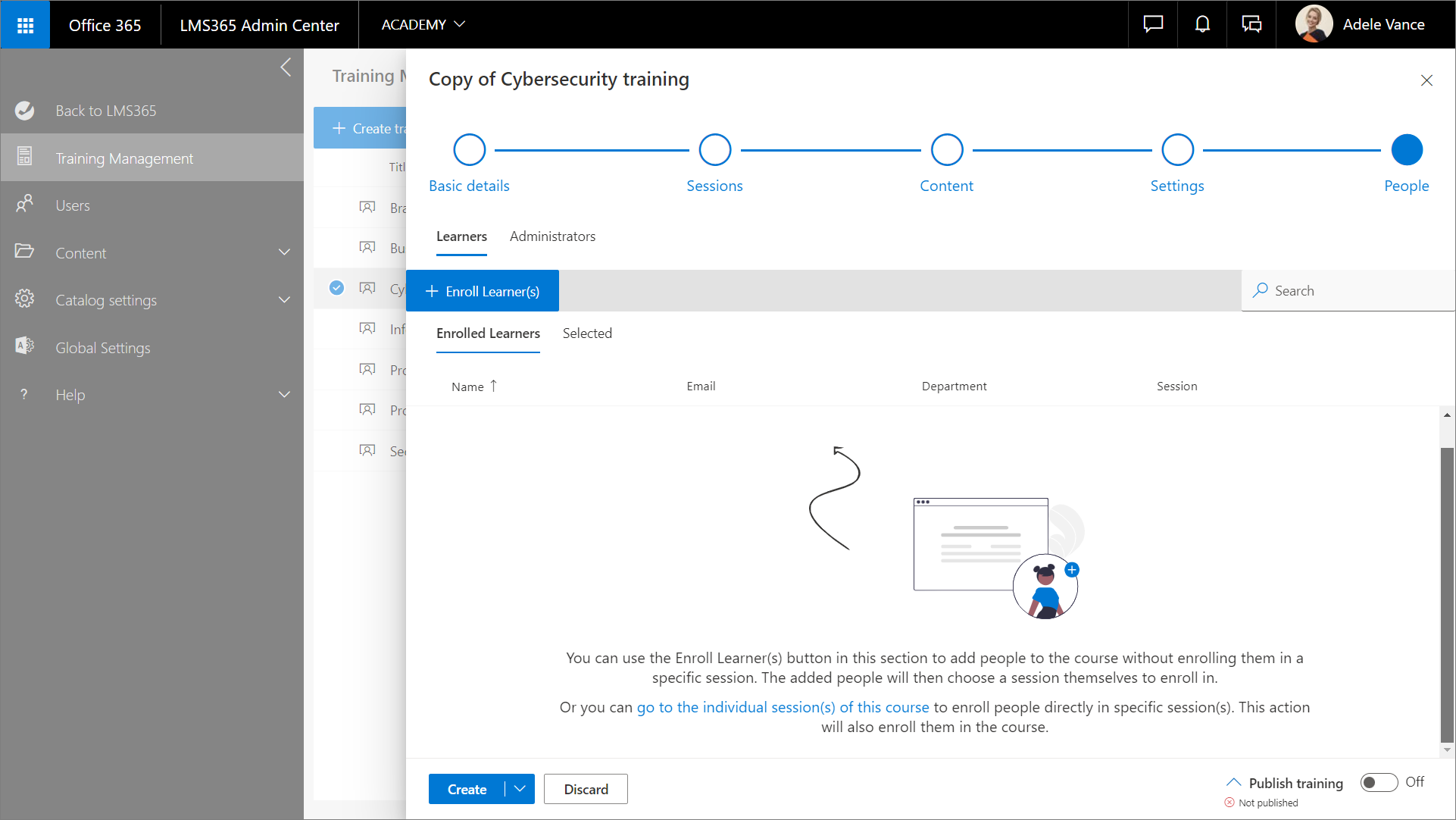 - Standardmäßig wird der Katalogadministrator, der die Kurskopie erstellt, zu deren Administrator.