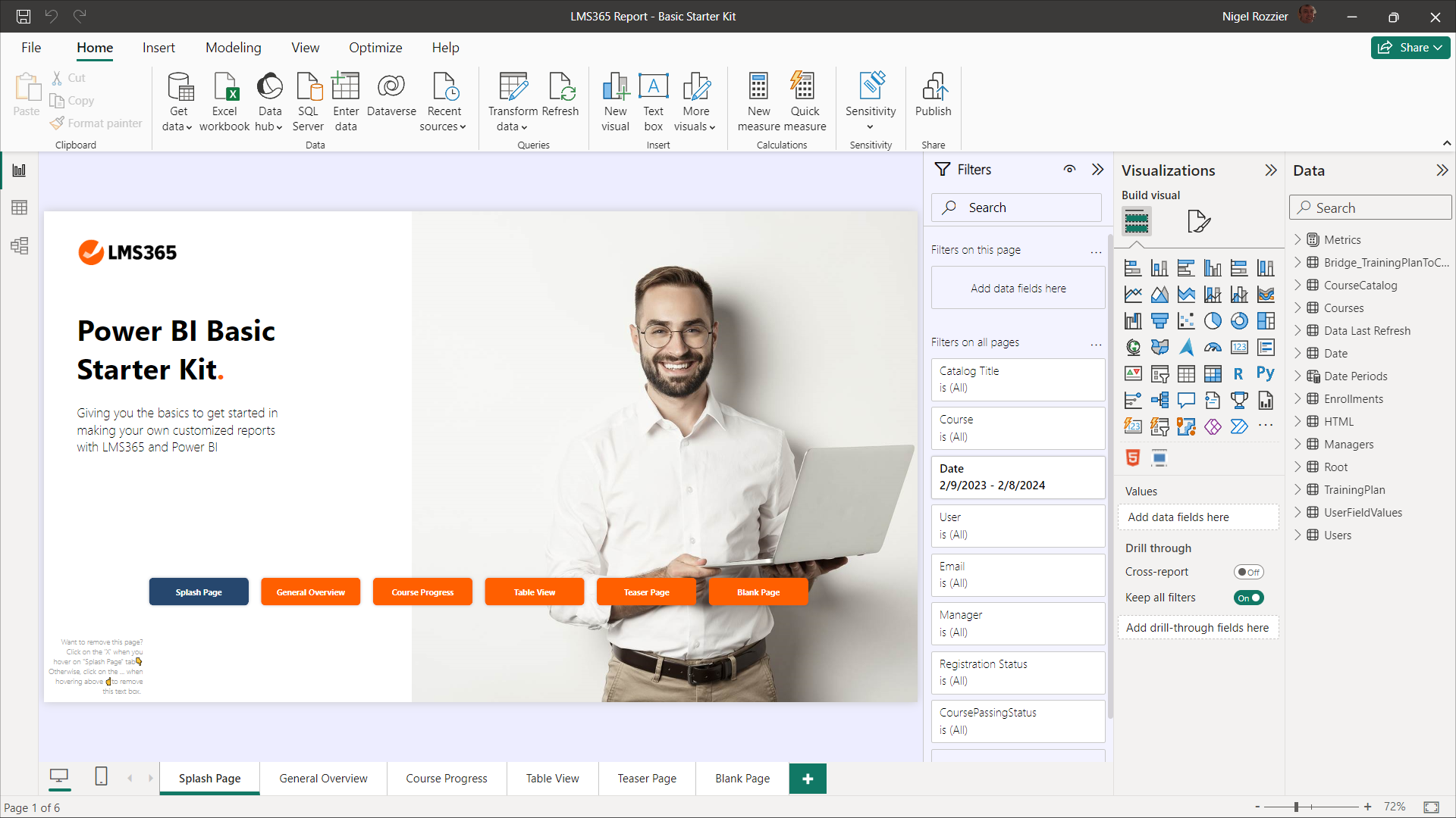 - Die Basic Starter Kit-Berichtsdatei (Learn365 Report - Basic Starter Kit.pbix) wurde auf Ihren Computer heruntergeladen. Sie können sie herunterladen, indem Sie auf den Anhang am Ende dieses Artikels klicken.