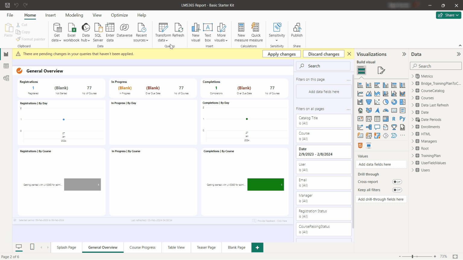 Learn365 Power BI Solutions – Basic Starter Kit ist eine Power BI-Berichtsdatei, die Ihnen einen schnellen Einstieg in die Nutzung von Power BI in Verbindung mit Ihrer Learn365-Instanz ermöglicht.