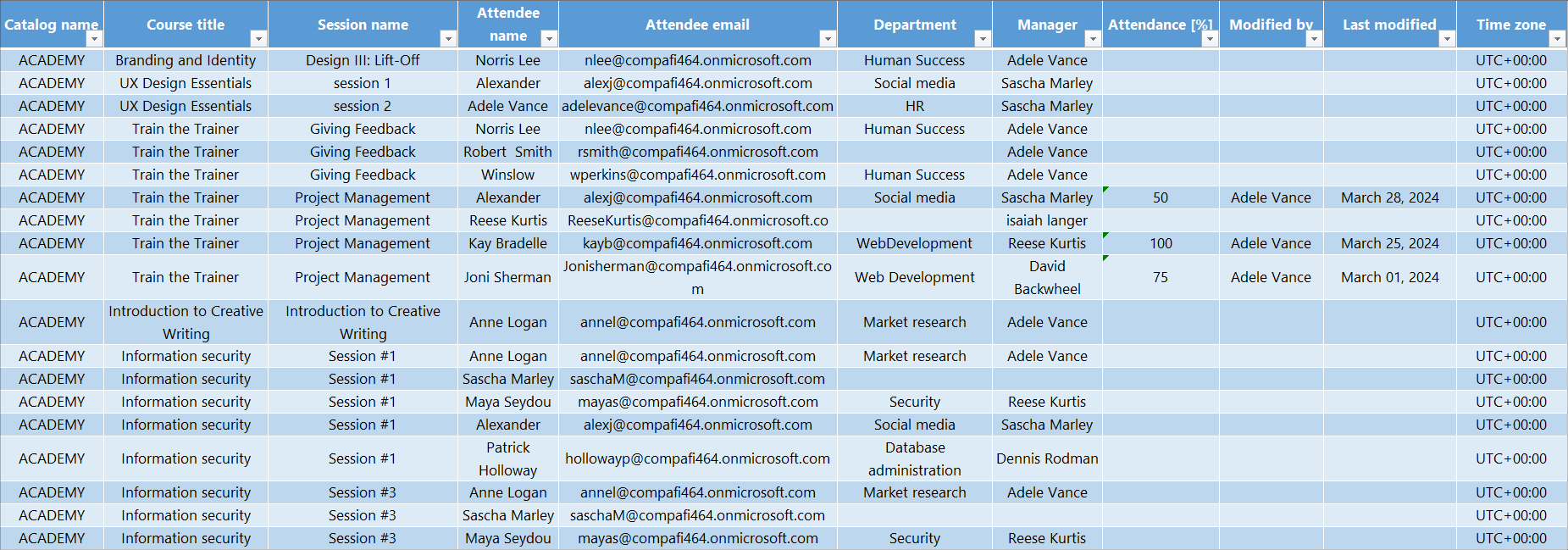 - Geändert von. Name des Benutzers, der den Anwesenheitswert zuletzt geändert hat.