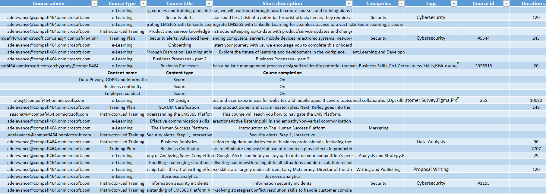 - Kursquelle. Quelle des Kurses, z. B. Go1 oder LinkedIn Learning.