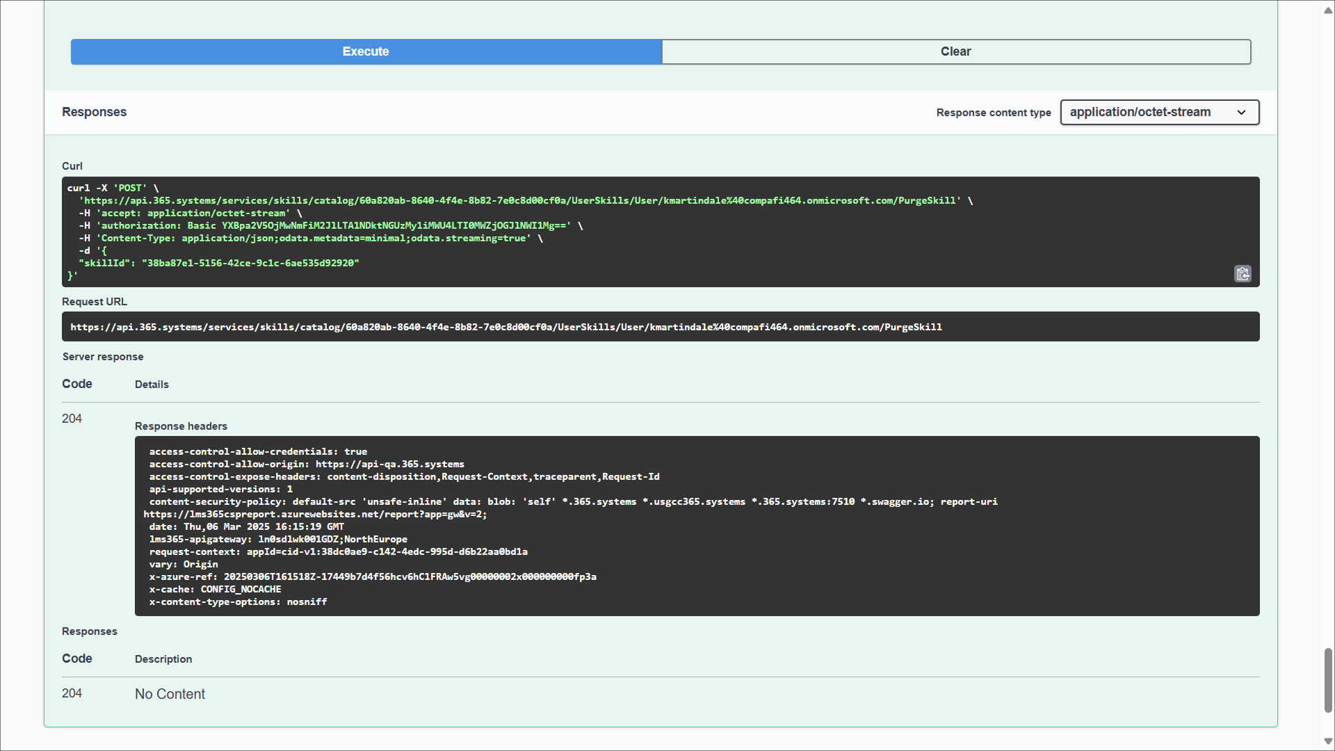 - Der 204-Code ohne weitere Parameter im Antworttext signalisiert eine erfolgreich abgerufene Antwort.