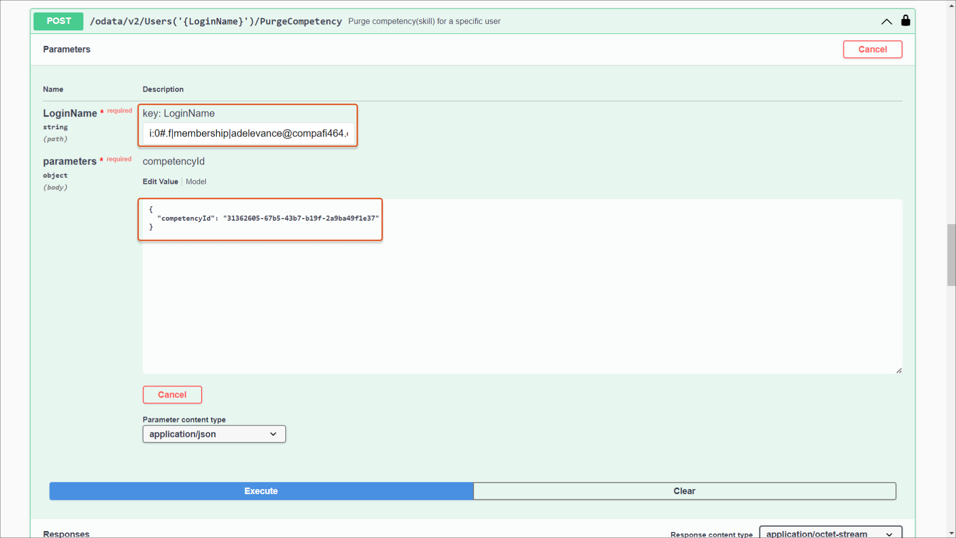 3. Geben Sie LoginName und competencyId ein.