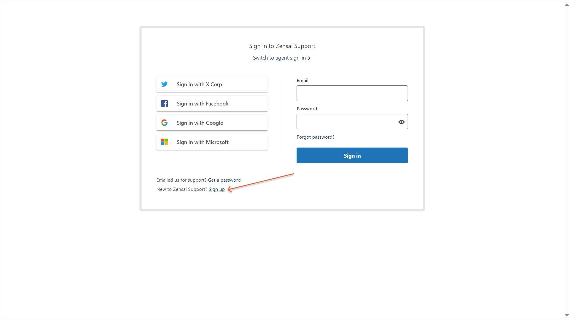 Gehen Sie wie folgt vor, um ein Konto im Zensai-Hilfecenter zu erstellen: