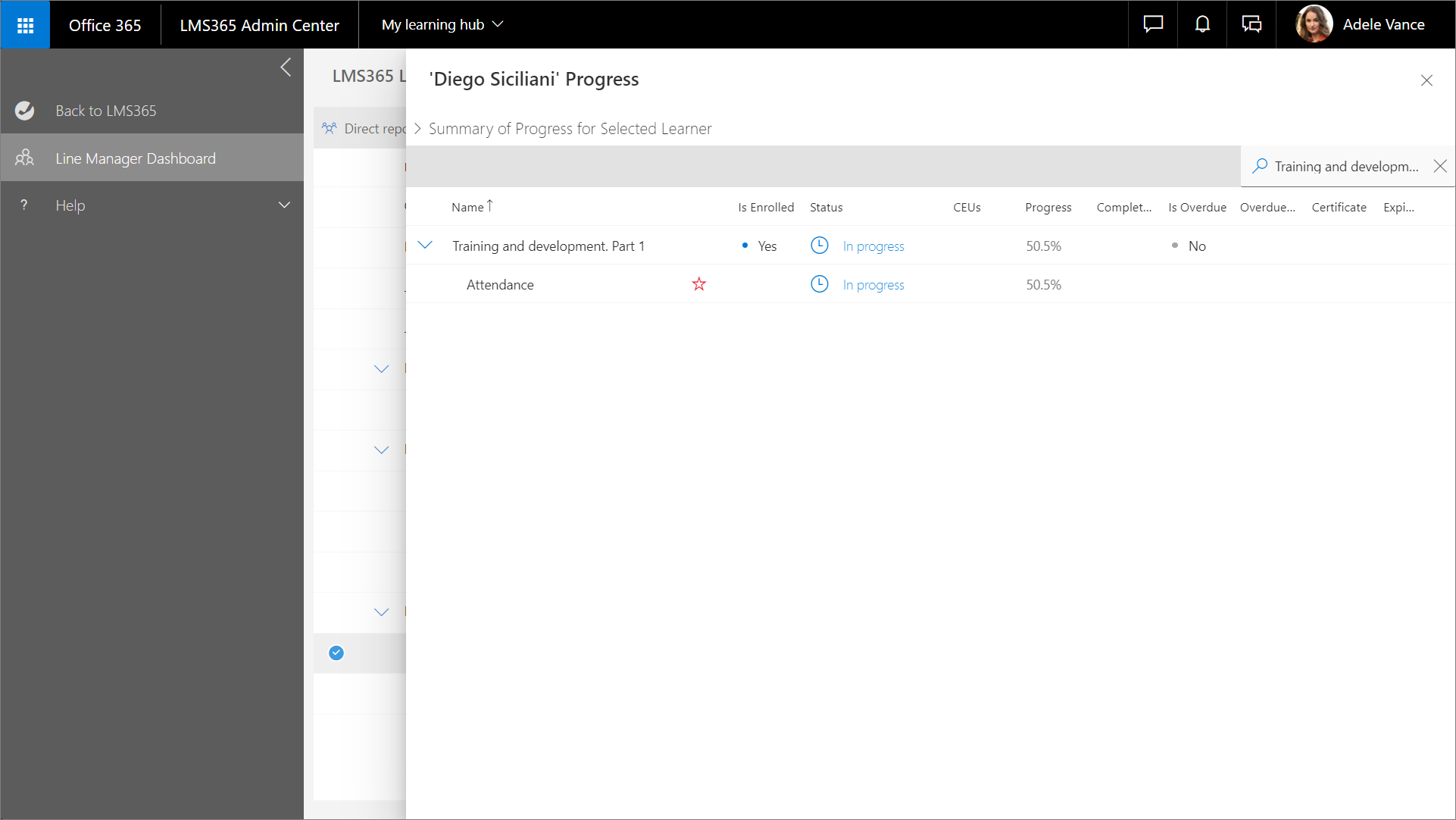 Fortschritt des Lernenden im Linienmanager-Dashboard aufrufen