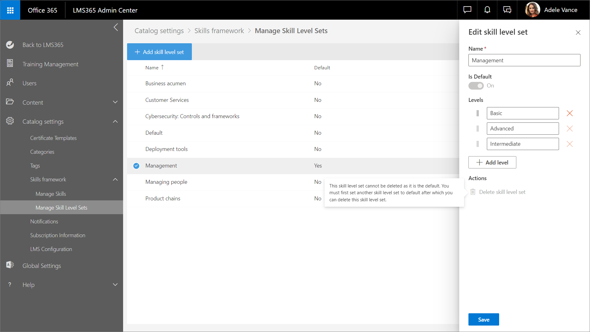 1. Gehen Sie zum Learn365 Admin Center > Katalogeinstellungen > Qualifikationsframework > Qualifikationen verwalten.