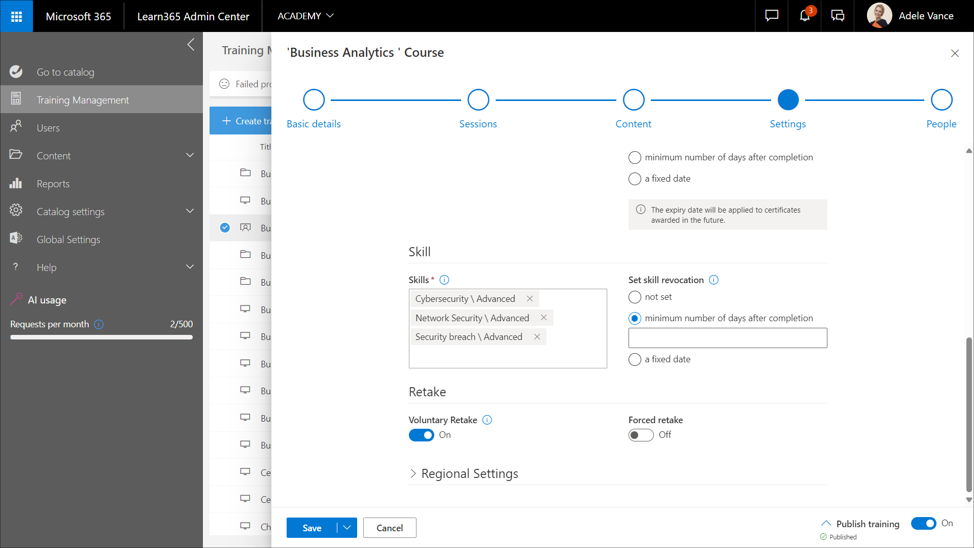 1. Im Learn365 Admin Center gehen Sie zu Schulungsmanagement > wählen Sie eine Schulung aus.