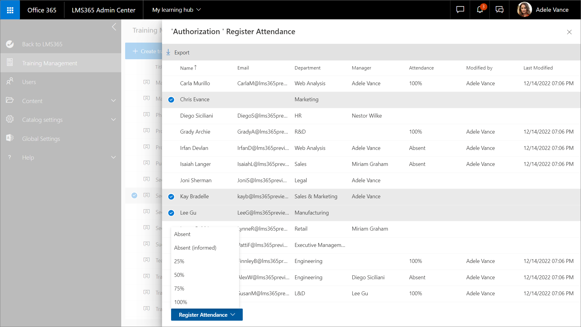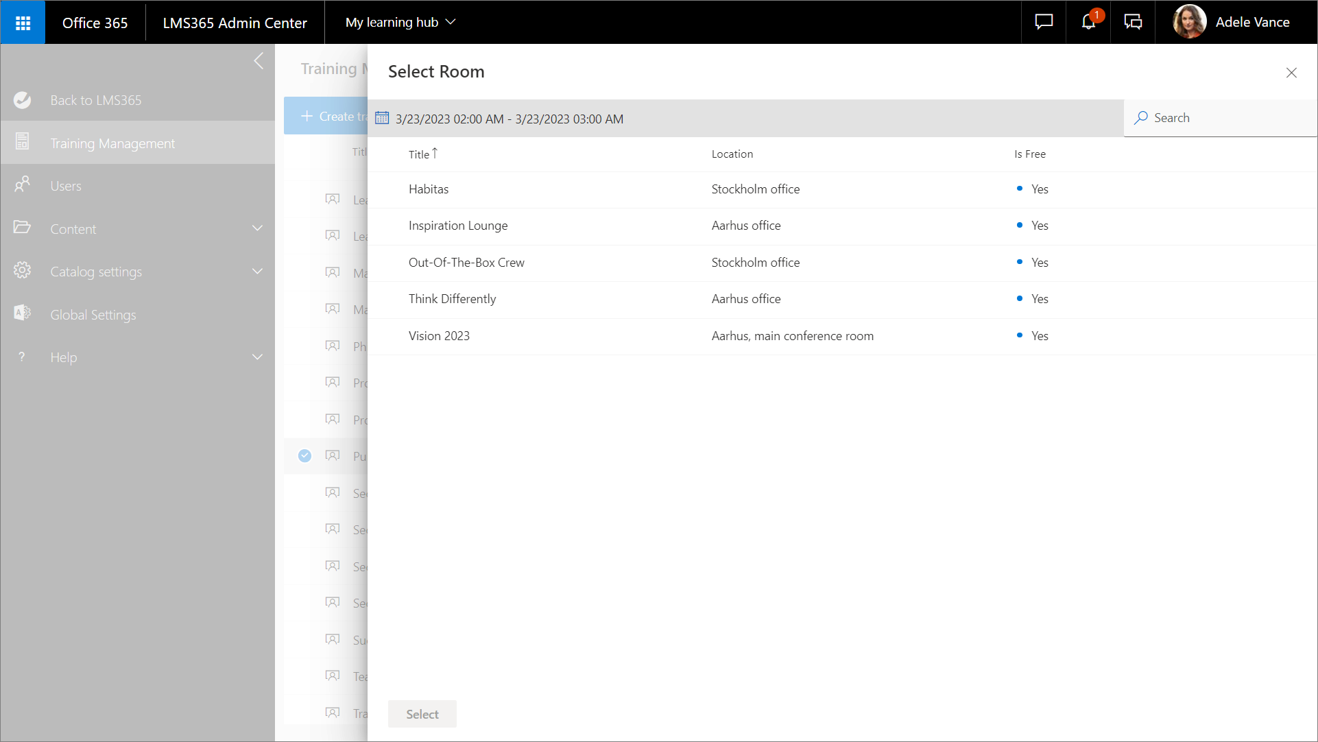 1. Wechseln Sie im Learn365 Admin Center zum Bereich Schulungsverwaltung.