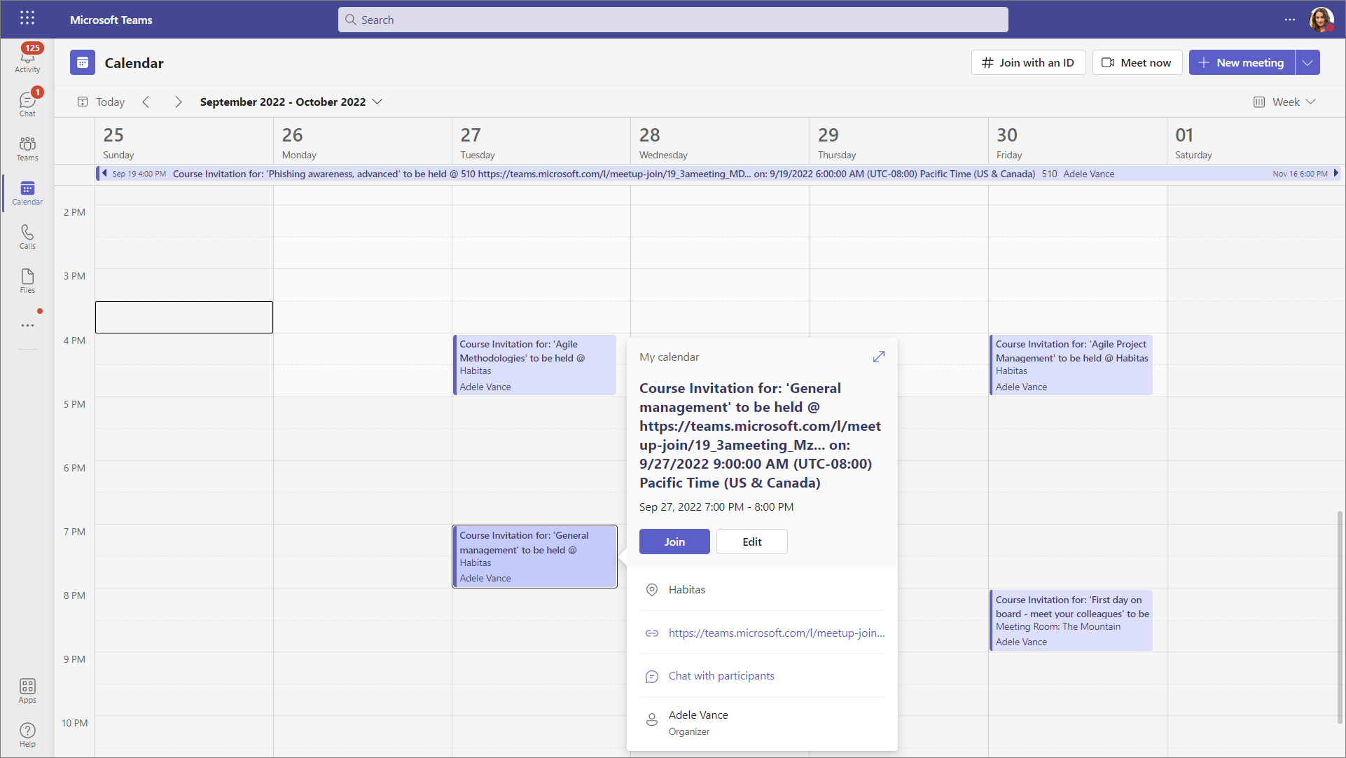 Nach dem Erstellen einer Microsoft Teams-Besprechung können Benutzer die Kurseinladung sowohl in Teams- als auch in Outlook-Kalendern sehen und der Besprechung direkt aus der Einladung heraus beitreten.