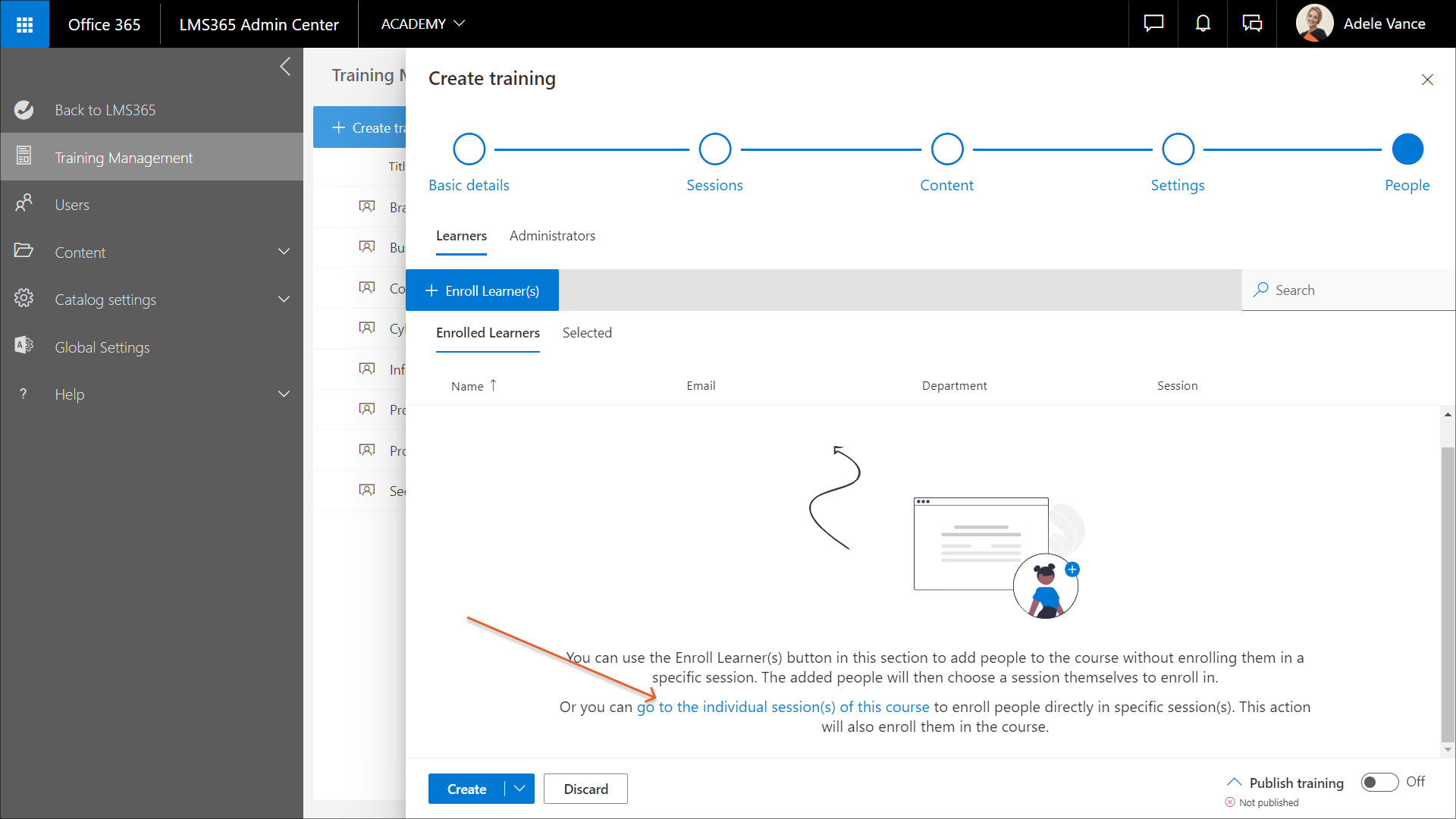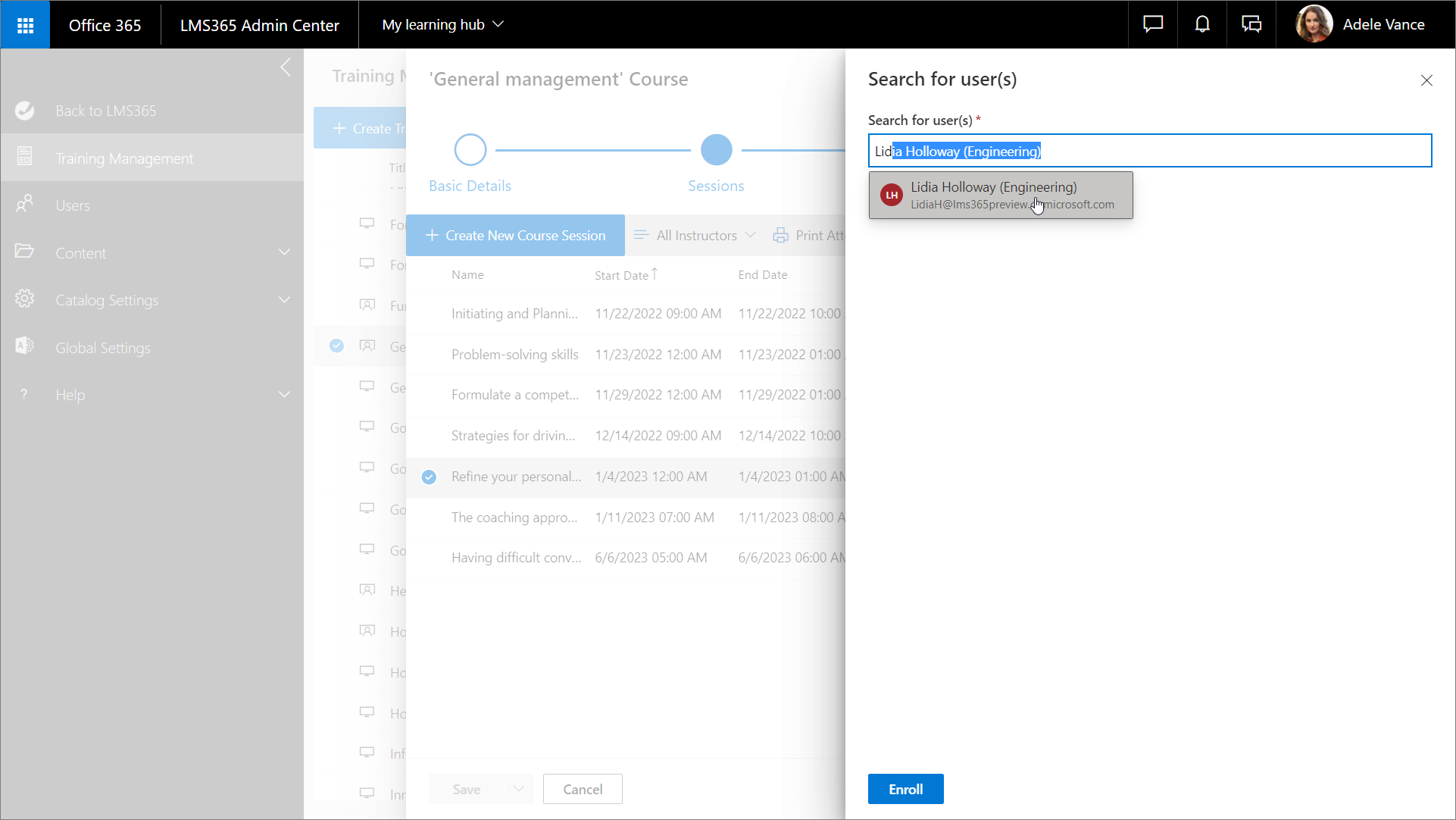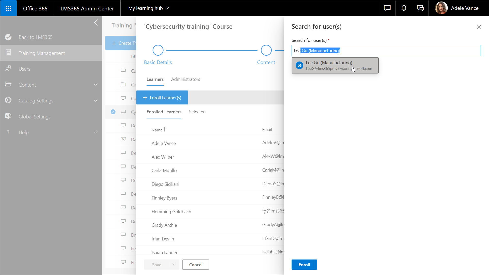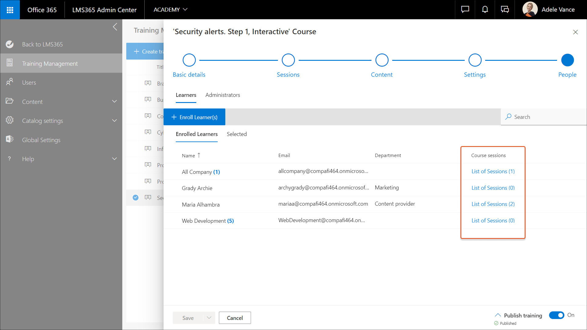 Erforderliche Rollen: Katalogadministrator. Kursadministratoren können nach der Erstellung des Kurses Lernende registrieren und verwalten, sobald ihnen die Rolle des Kursadministrators zugewiesen wurde.