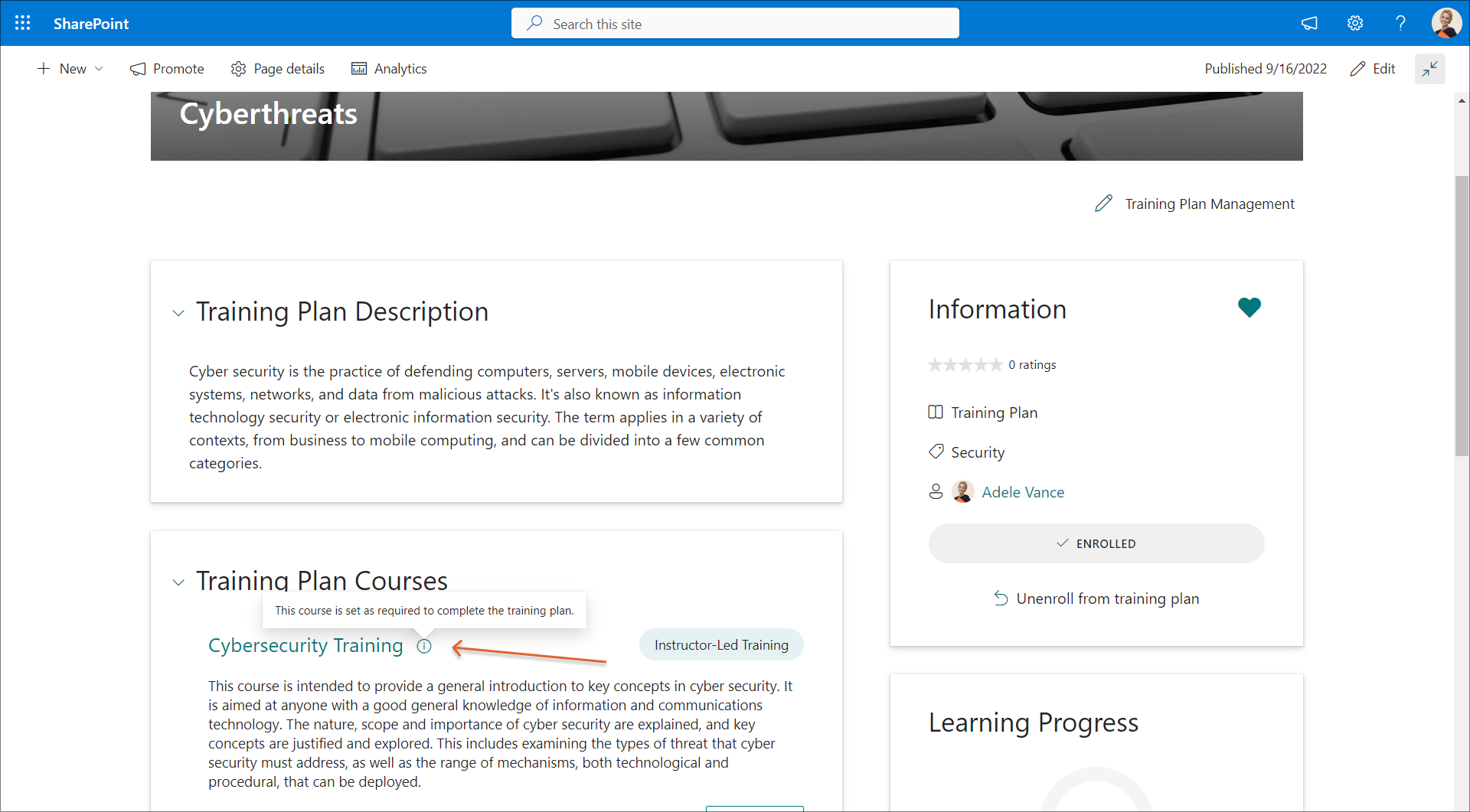 Standardmäßig wird der Benutzer, der den Schulungsplan erstellt, automatisch als Administrator des Schulungsplans zugewiesen.