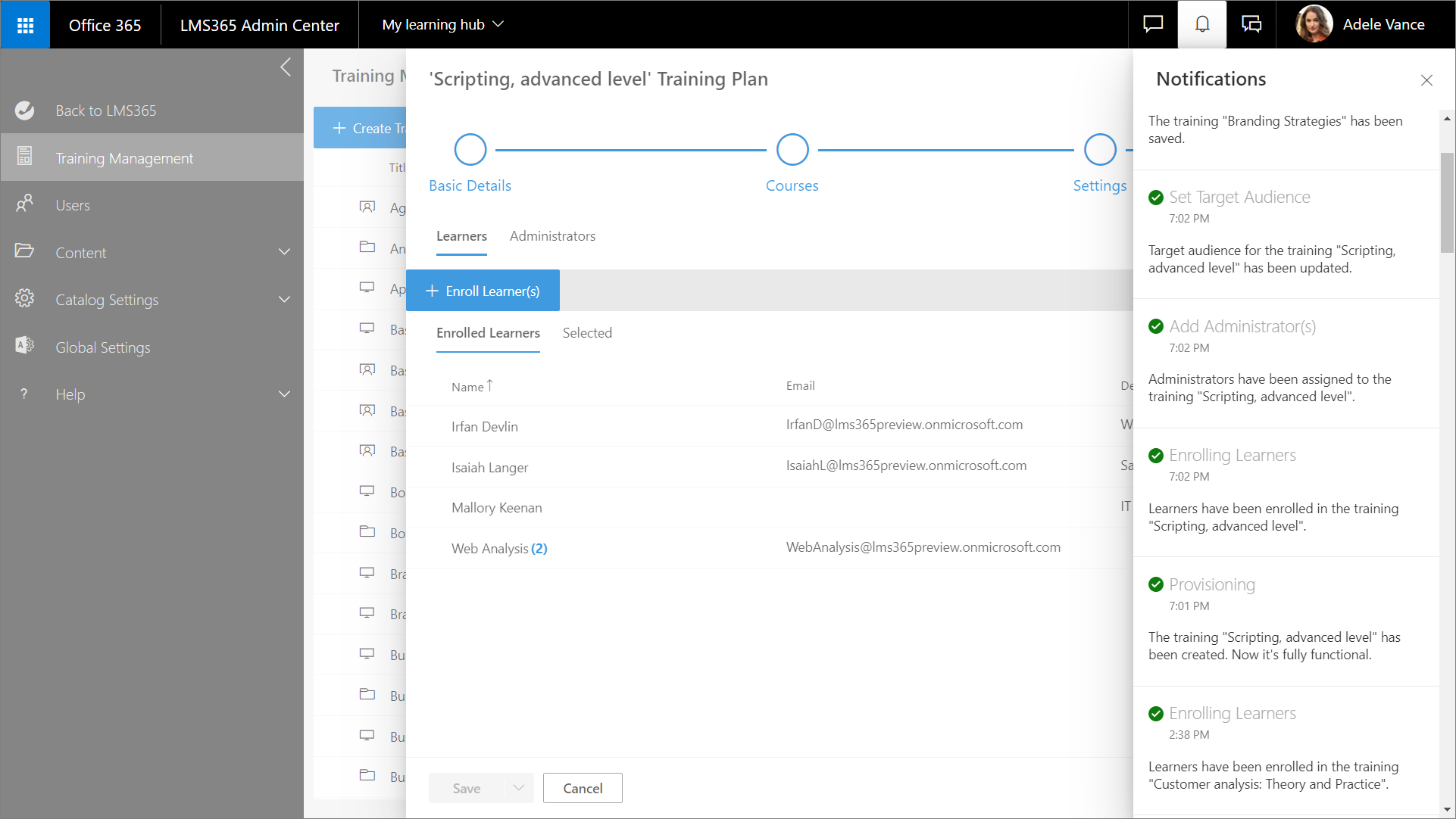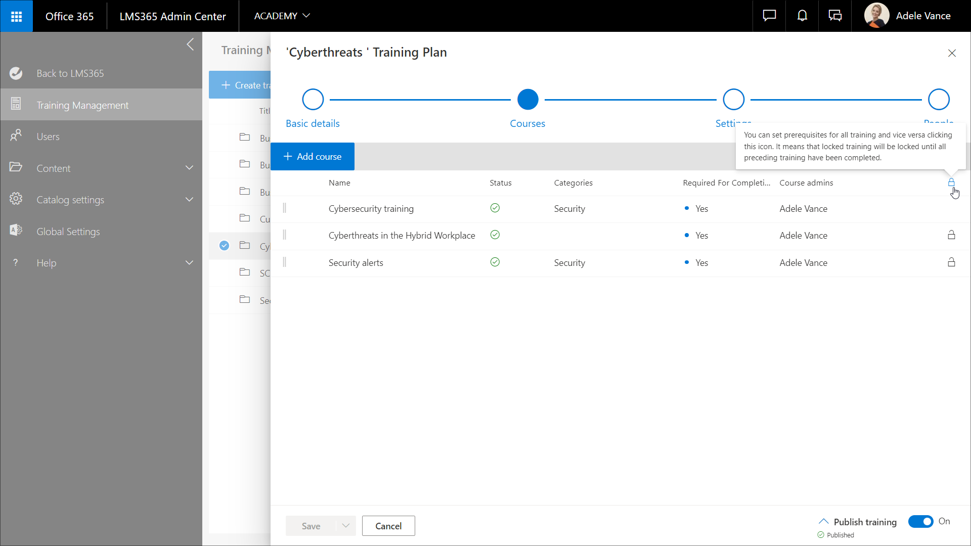 Mit der Learn365-Funktion „Schulungspläne“ können Sie Kurse zu Schulungsplänen zusammenfassen und maßgeschneiderte Schulungsprogramme für Lernende erstellen.