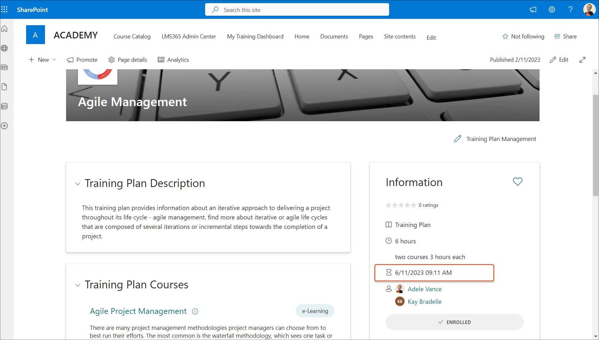 Erforderliche Rolle: Katalogadministrator. Ein Schulungsplanadministrator kann einen Schulungsplan bearbeiten und verwalten, nachdem er erstellt wurde.