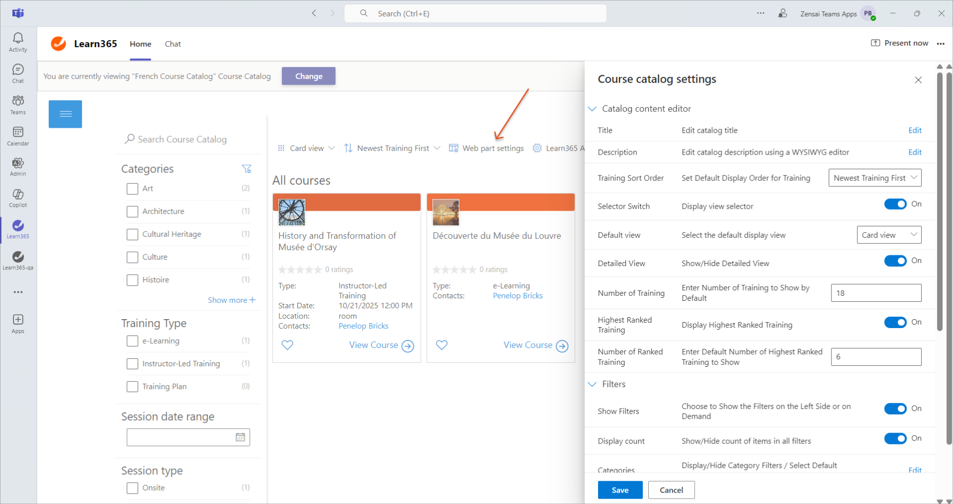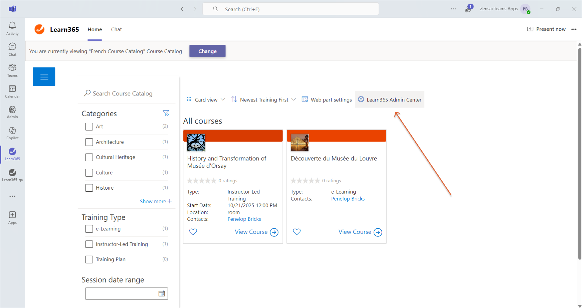 1. Unter Ansicht wählen Sie Kurskatalog aus, um einen Katalog im Team zugänglich zu machen.