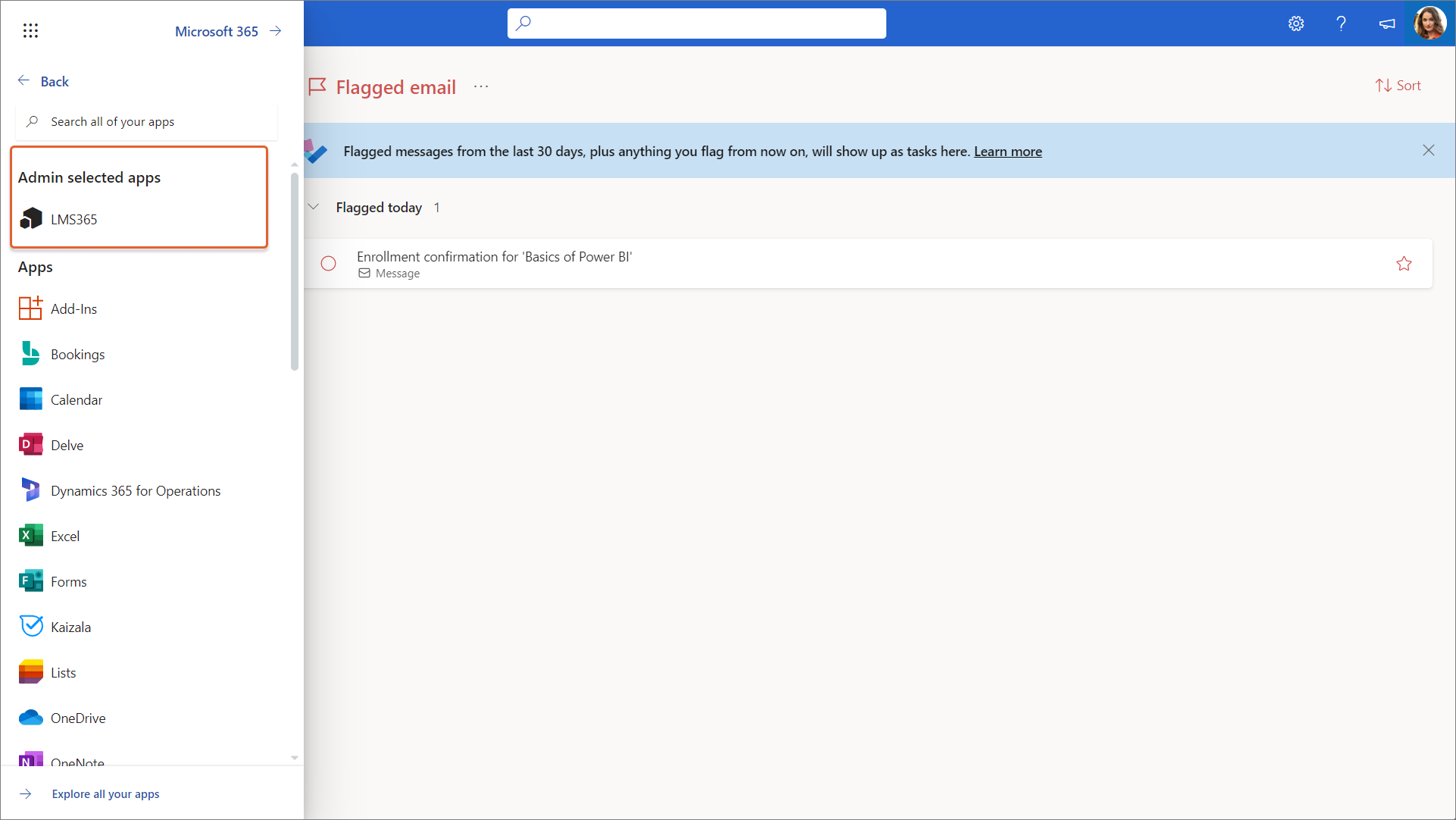 Jetzt finden Benutzer die Learn365-App unter Apps im Microsoft 365-App-Startfeld.