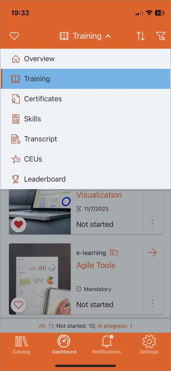 - Mein Schulungsstatus gibt Ihnen einen Überblick über Ihren Fortschritt.