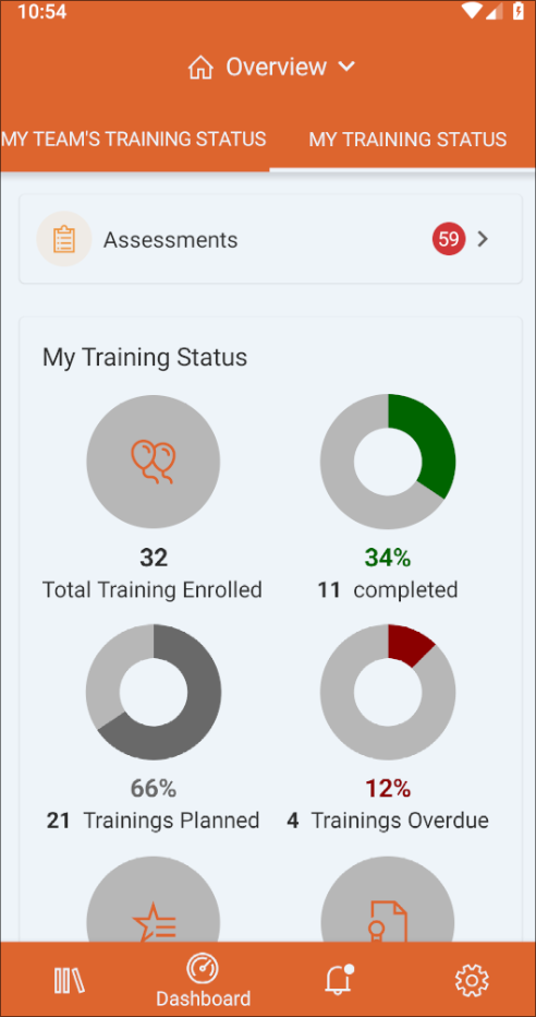 Die Registerkarte Dashboard in der Learn365-Mobil-App ist die mobile Version von Mein Schulungs-Dashboard.