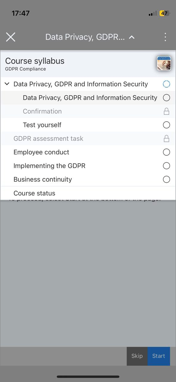Der Inhalt von Go1-Kursen kann im Offlinemodus nicht genutzt werden, da der SCORM-Wrapper eine Internetverbindung benötigt.