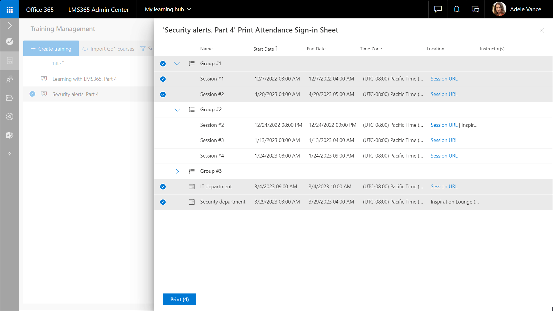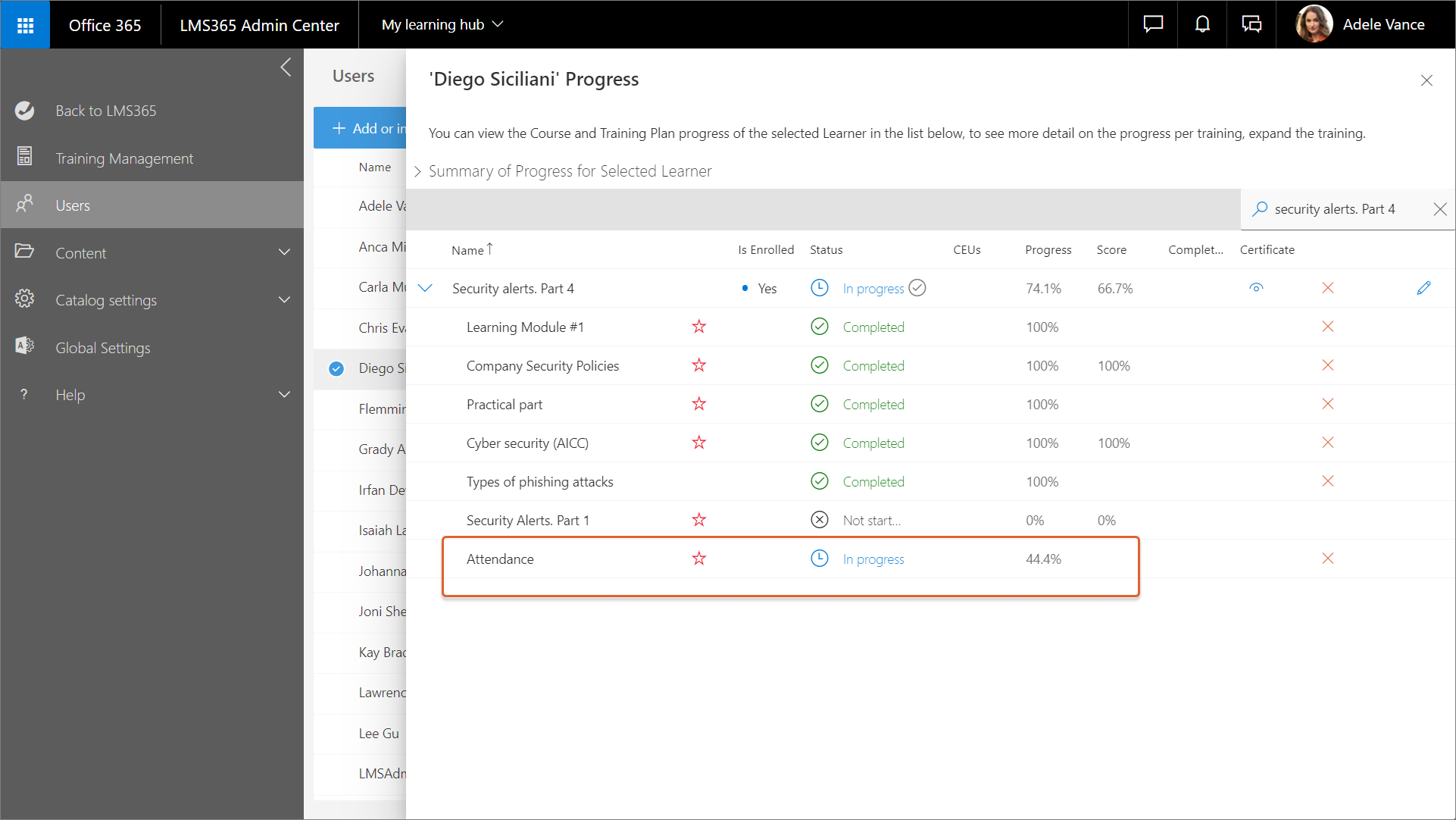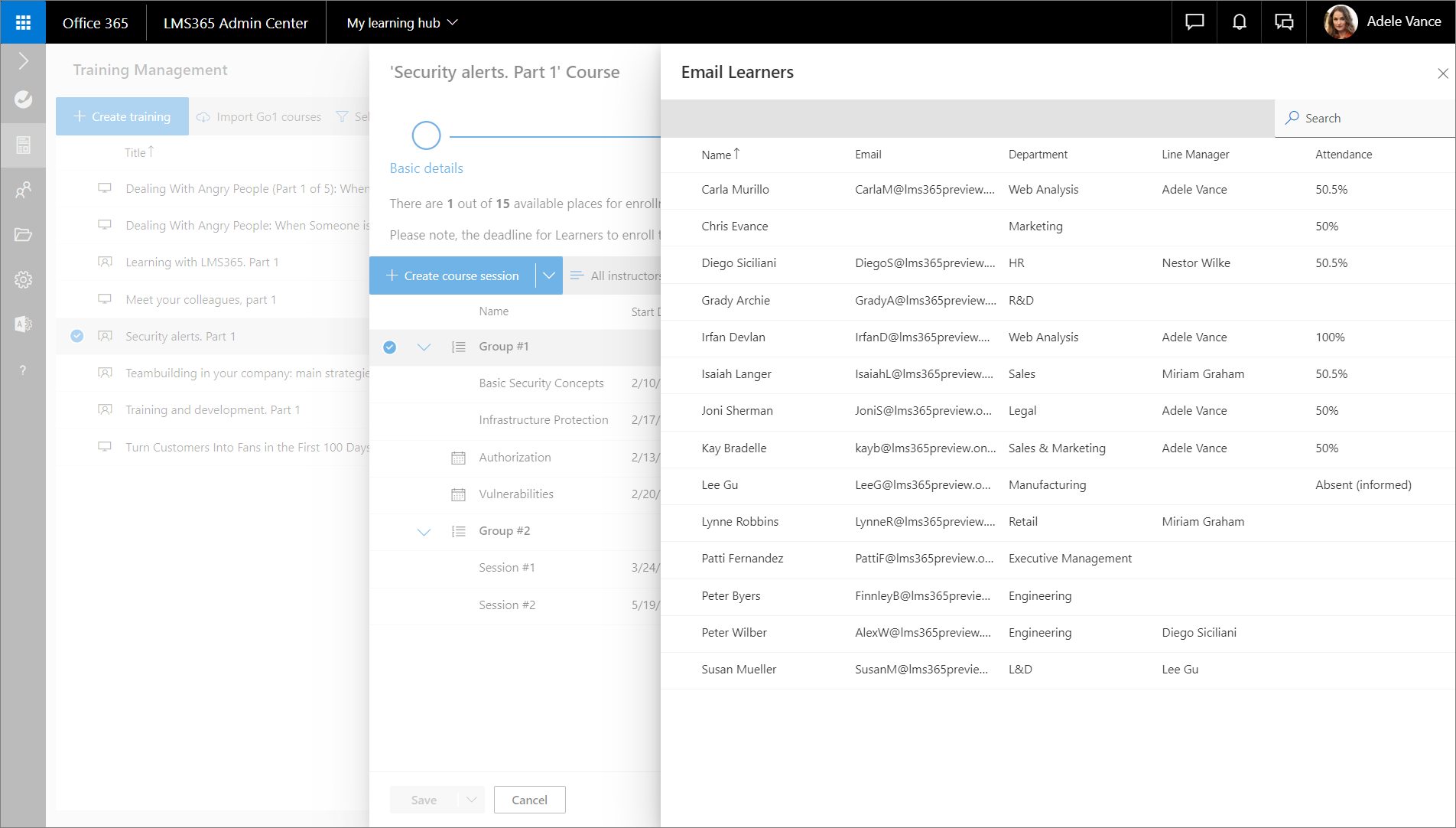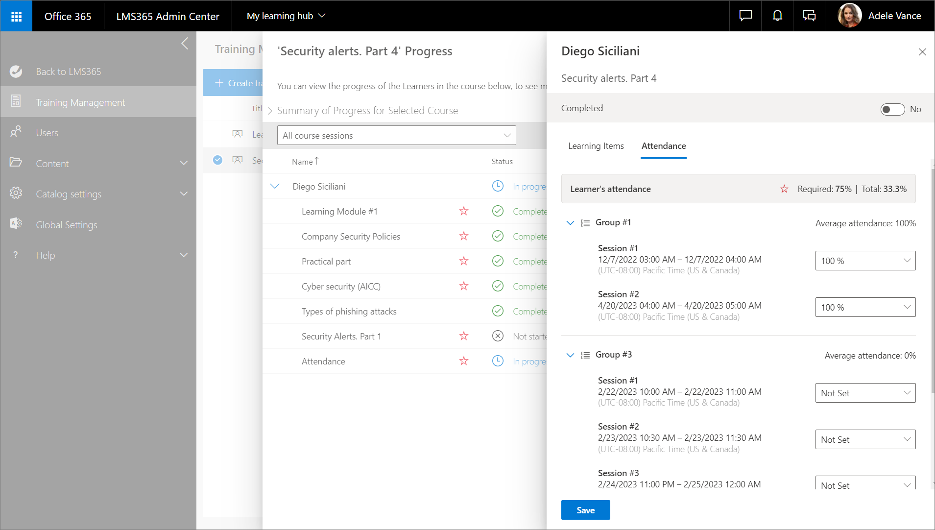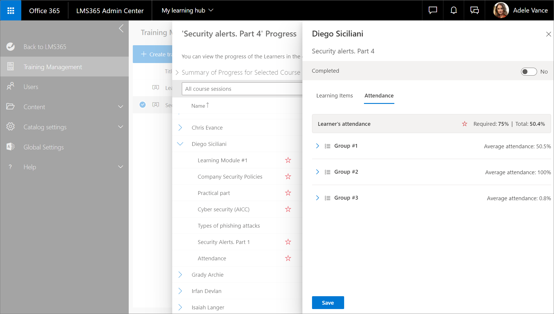 1. Gehen Sie zu Learn365 Admin Center > Schulungsverwaltung und wählen Sie den gewünschten Kurs aus.