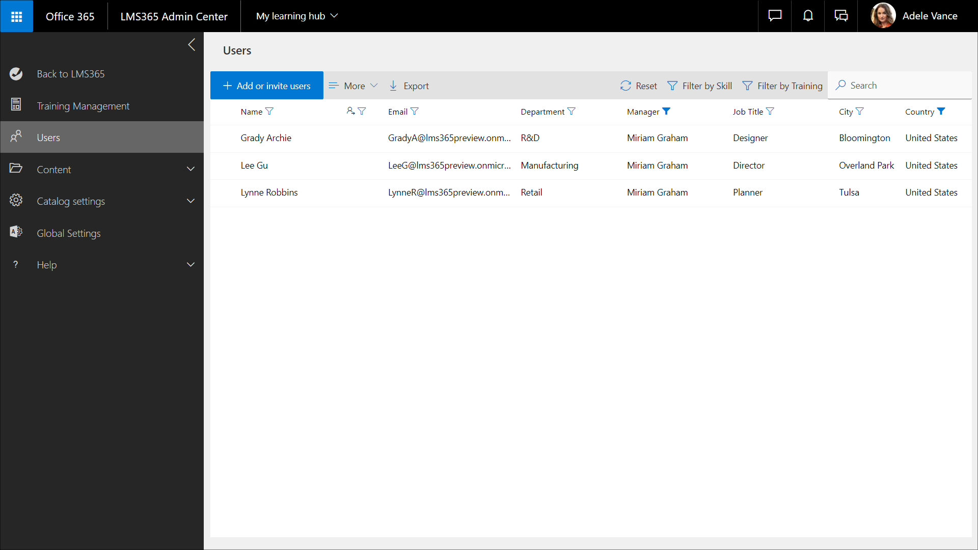 1. Klicken Sie im Learn365 Admin Center im linken Navigationsmenü auf Benutzer.