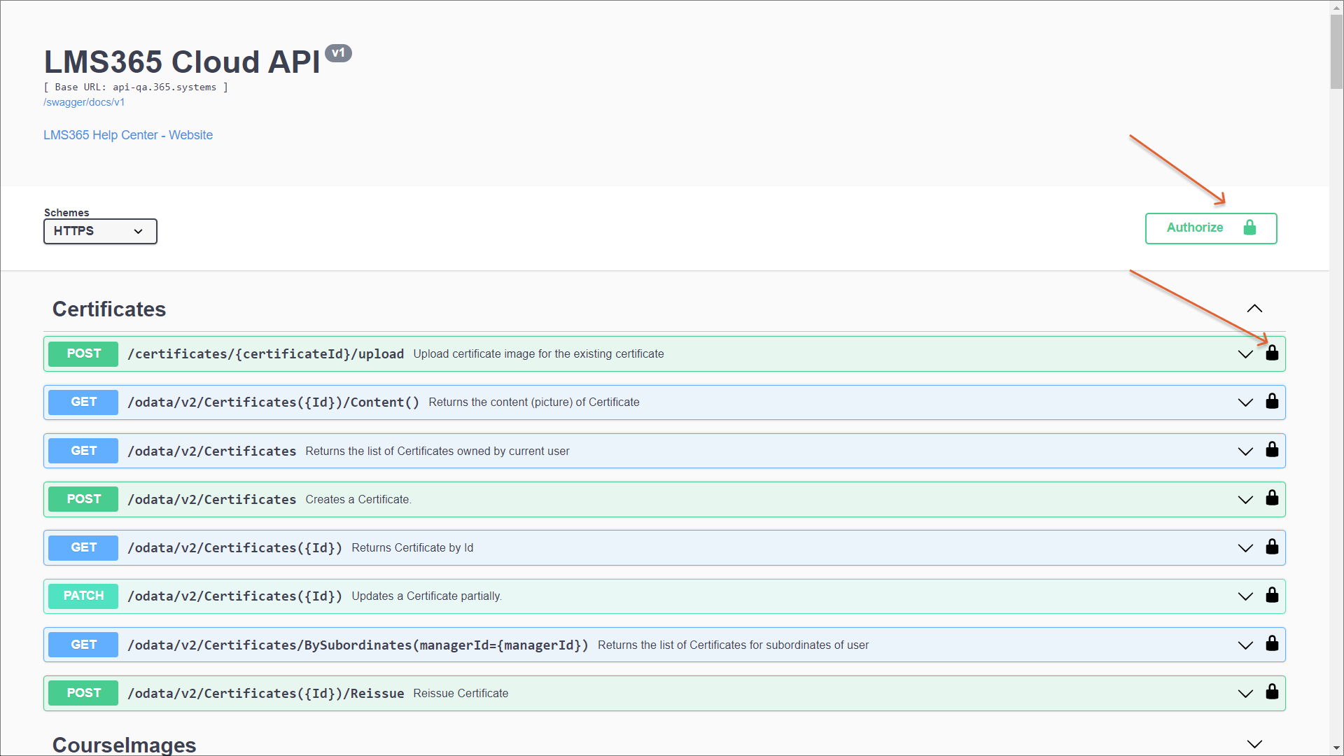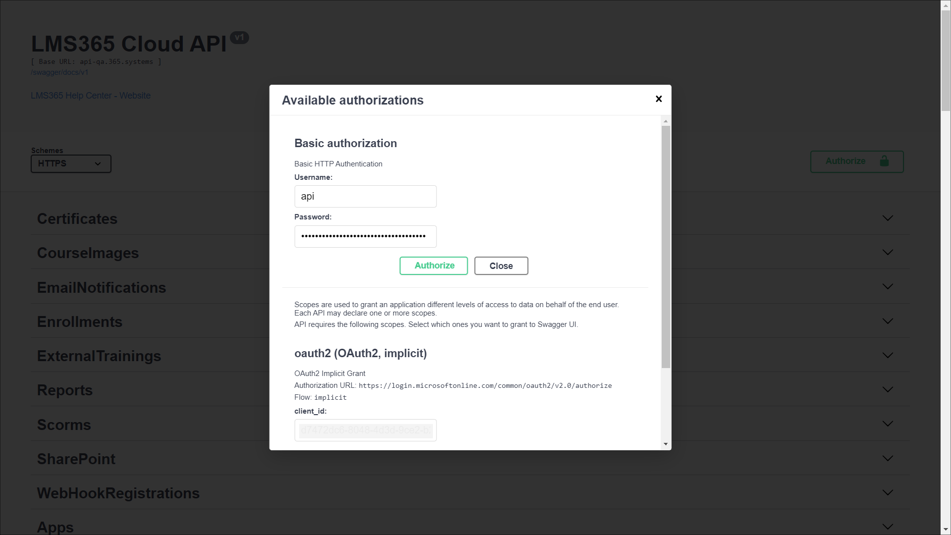 1. Gehen Sie zu https://api.365.systems, und navigieren Sie zu Learn365-Cloud-API.