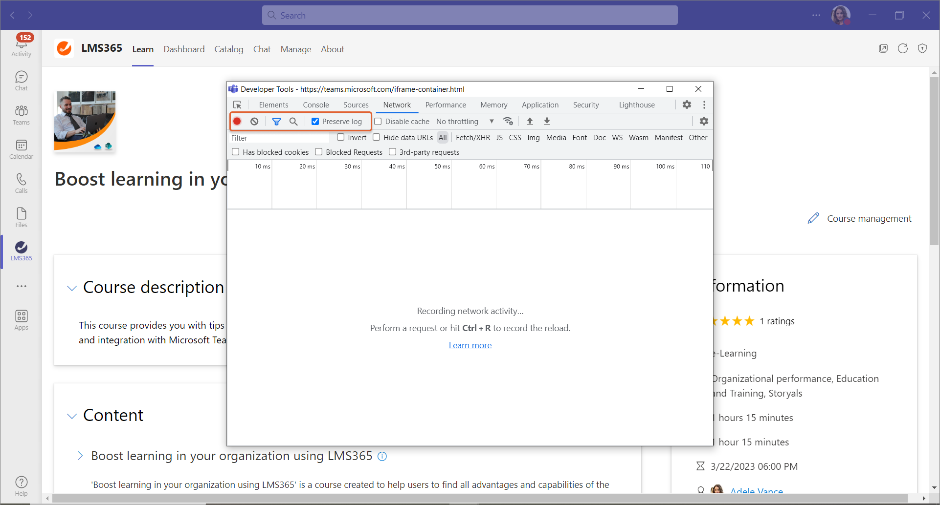 Dieser Artikel beschreibt, wie Sie eine HAR-Datei erstellen, wenn Probleme bei der Nutzung der Learn365-App in Microsoft Teams auftreten.