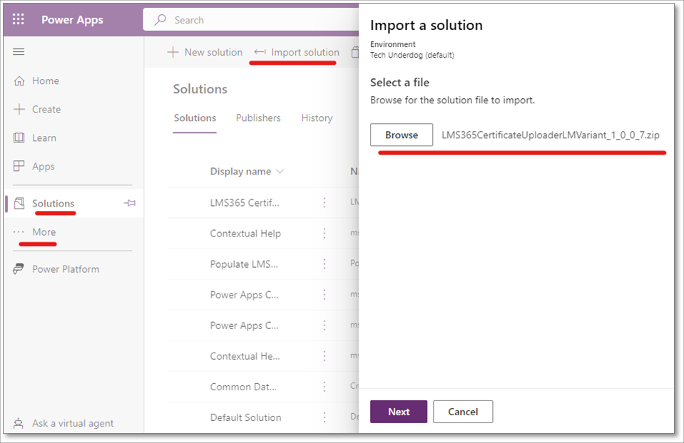 - Don't unzip this package file. This file must remain zipped in order for it be uploaded to your Power Platform.