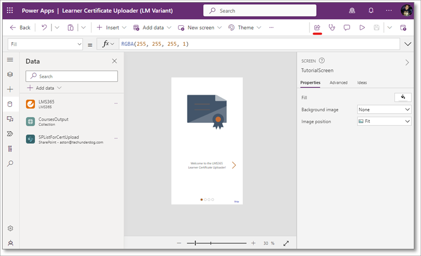 To enable users to access the Learner Certificate Uploader solution, you'll need to share the Power App.