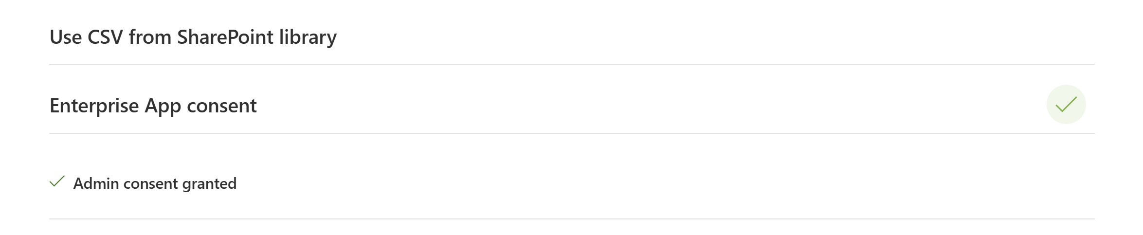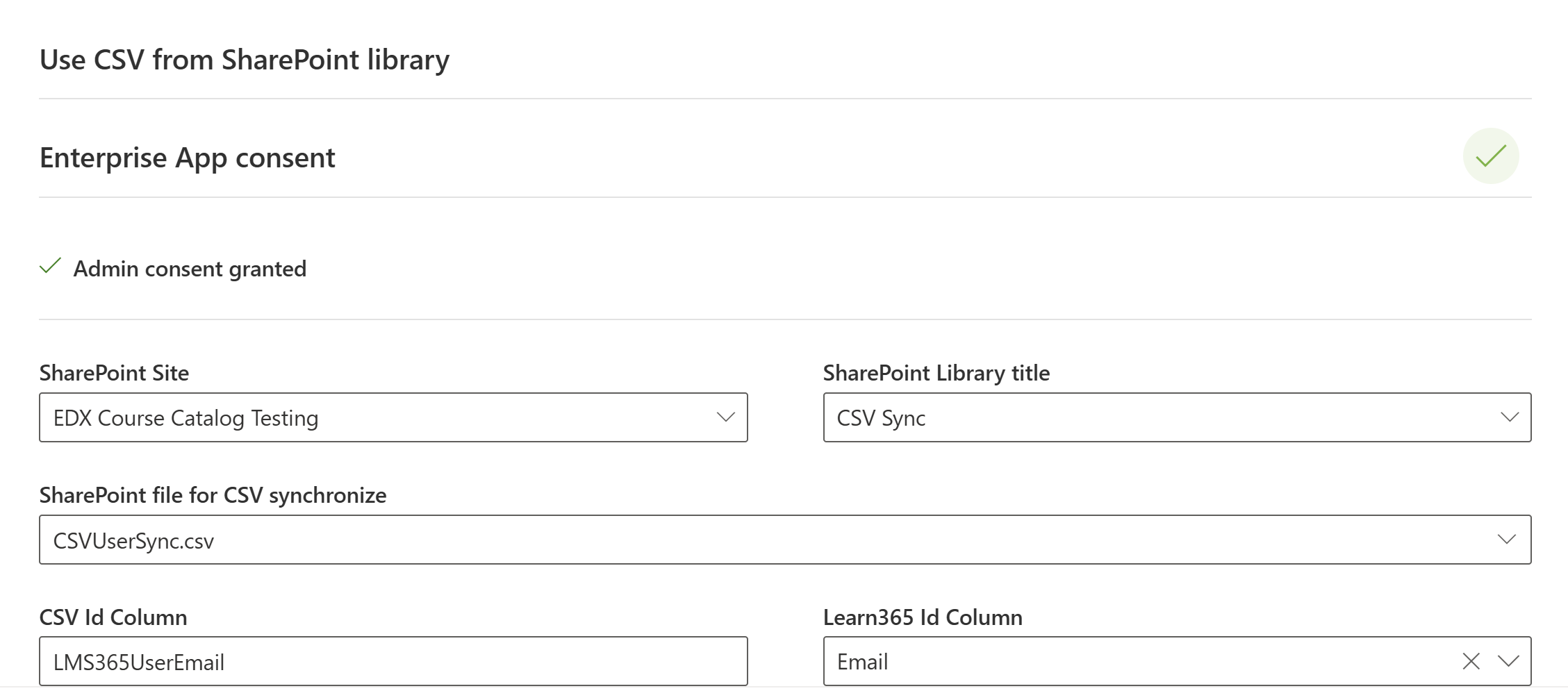 - SharePoint library settings - This is used with an associated SharePoint app registration that gives "read" access to the SharePoint site from where you would like to synchronize CSV reports.