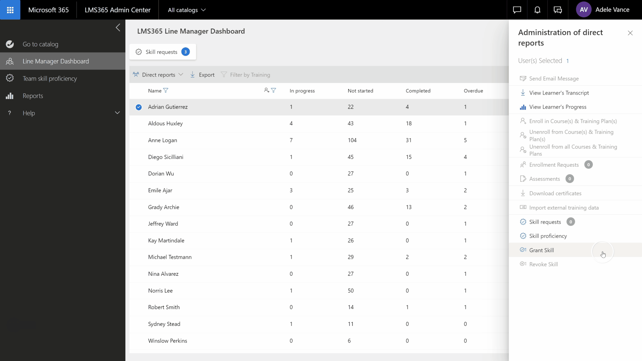 We’ve introduced a new page in the Line Manager Dashboard that provides line managers an overview of their team's skill proficiency.