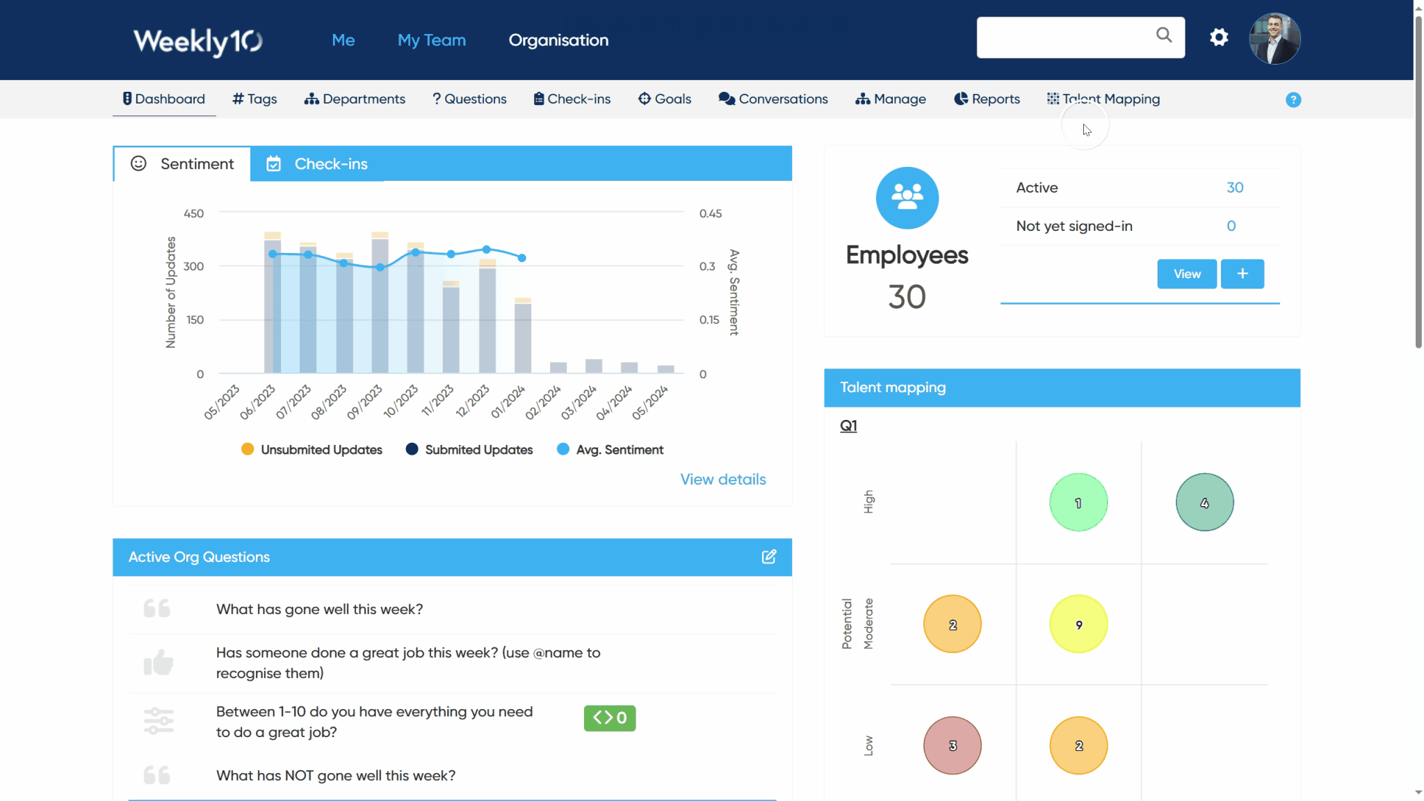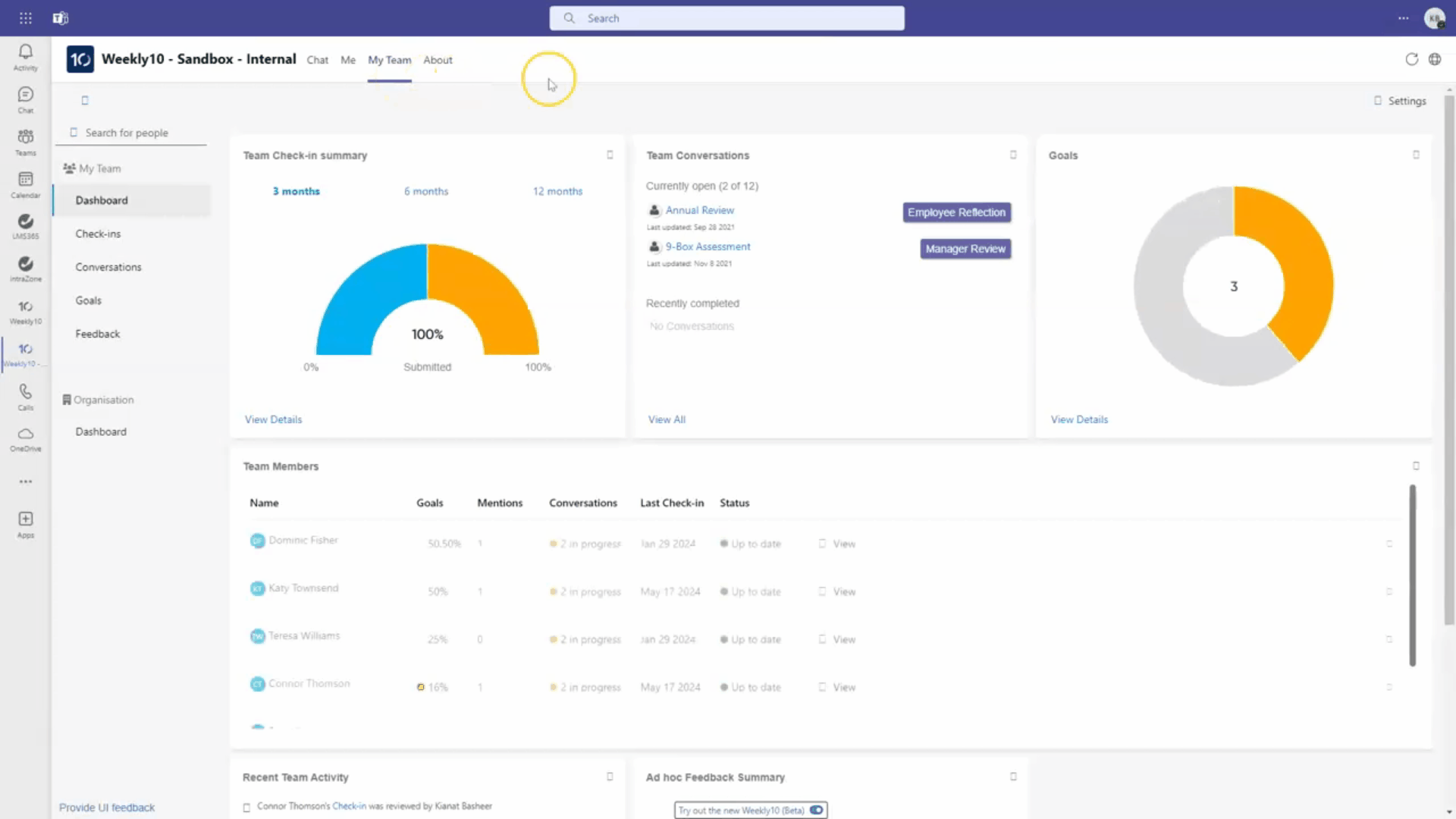 To assist managers in identifying trends and issues earlier, we’ve introduced an AI-powered widget as well as a dashboard that provide managers with an at-a-glance overview of common topics across their team members’ check-ins.