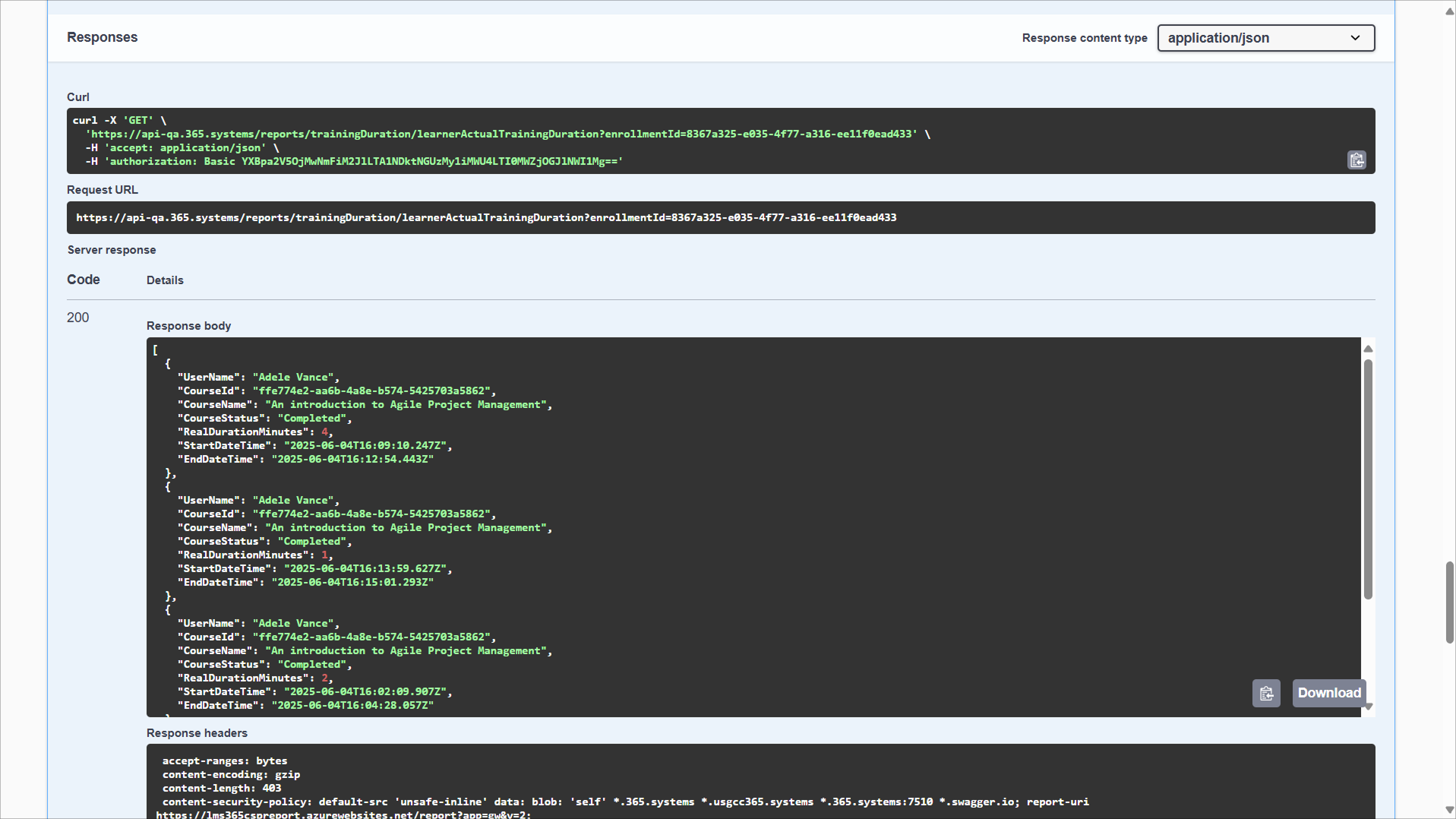 In this article, we describe the steps you should follow to generate the two variants of the Training duration report via API.