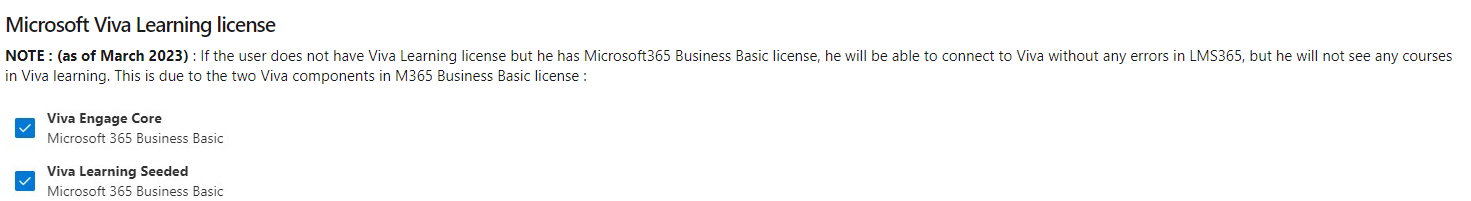 In order to integrate Learn365 with Microsoft Viva Learning, make sure the user triggering the Viva connection has a Viva Suite license assigned.