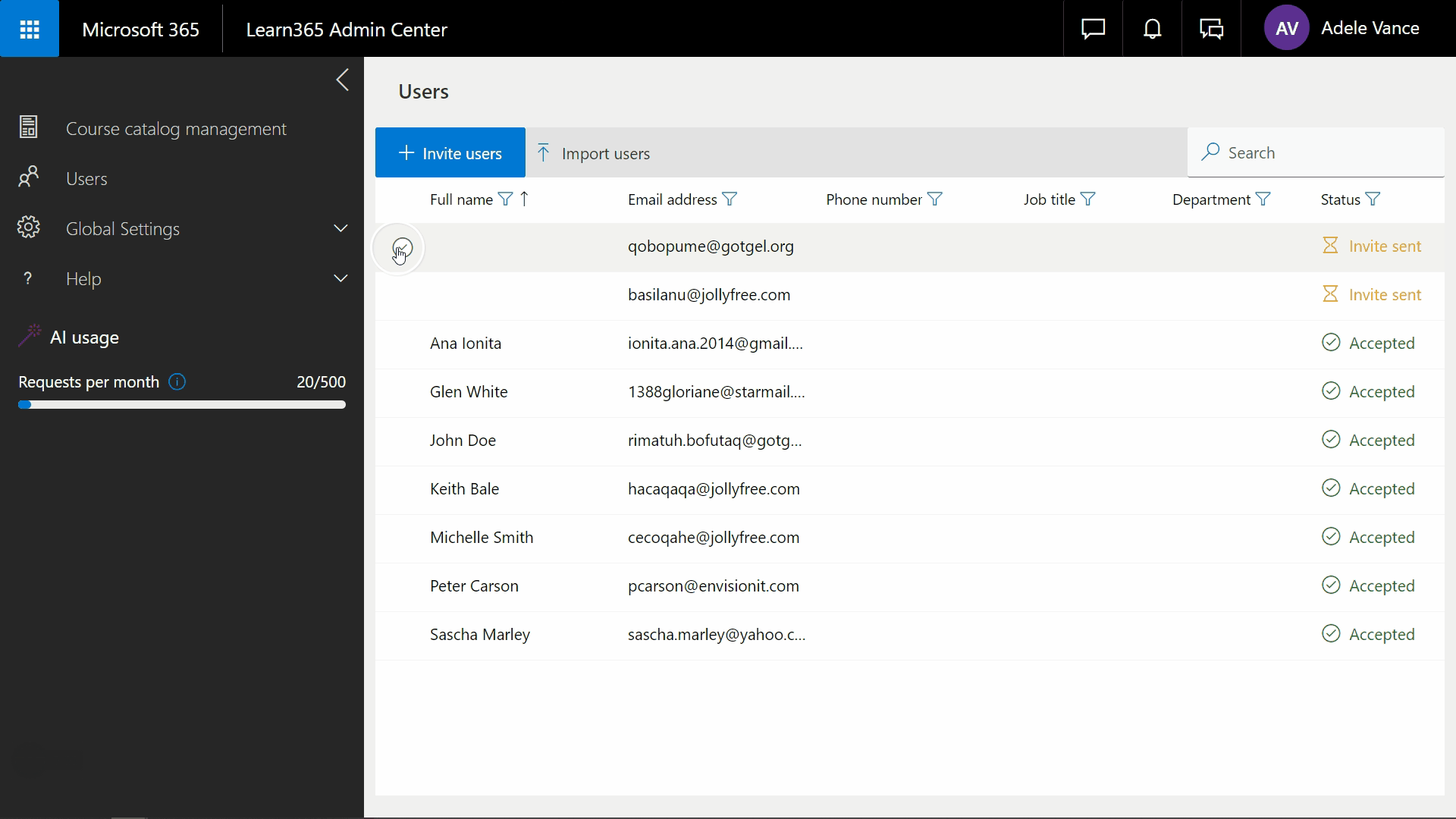 Edit, delete, and revoke invites for Flow365 users