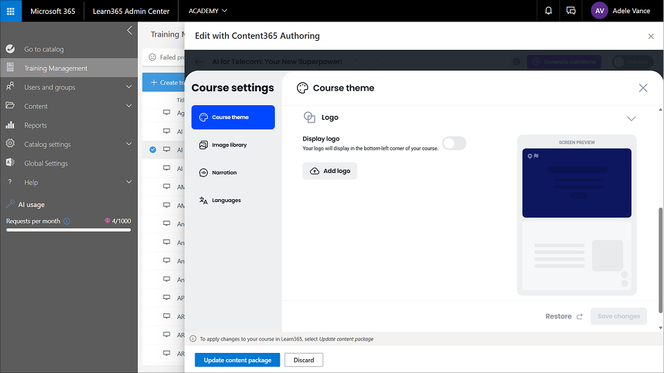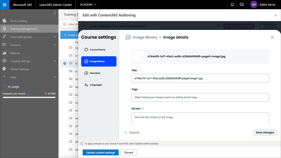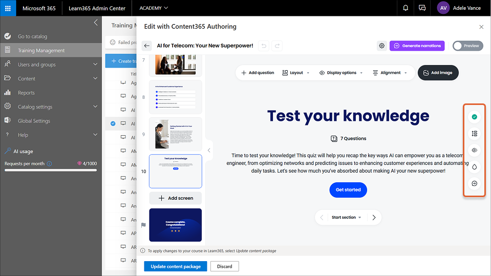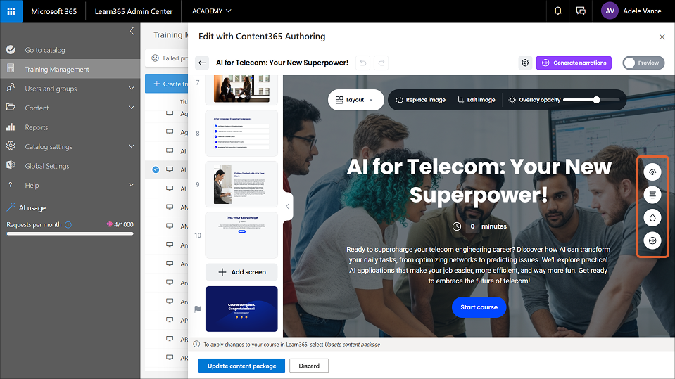 Content365 Authoring: edit a course