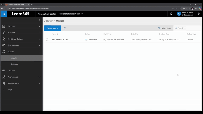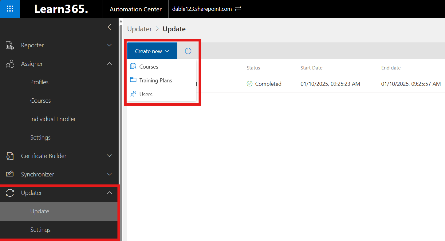 Training Plan enrollments can now be updated via Updater from Automation Center. When updating a Training Plan, any new courses will be added to the plan. Learners will be enrolled and their completion status will be set to "In Progress"