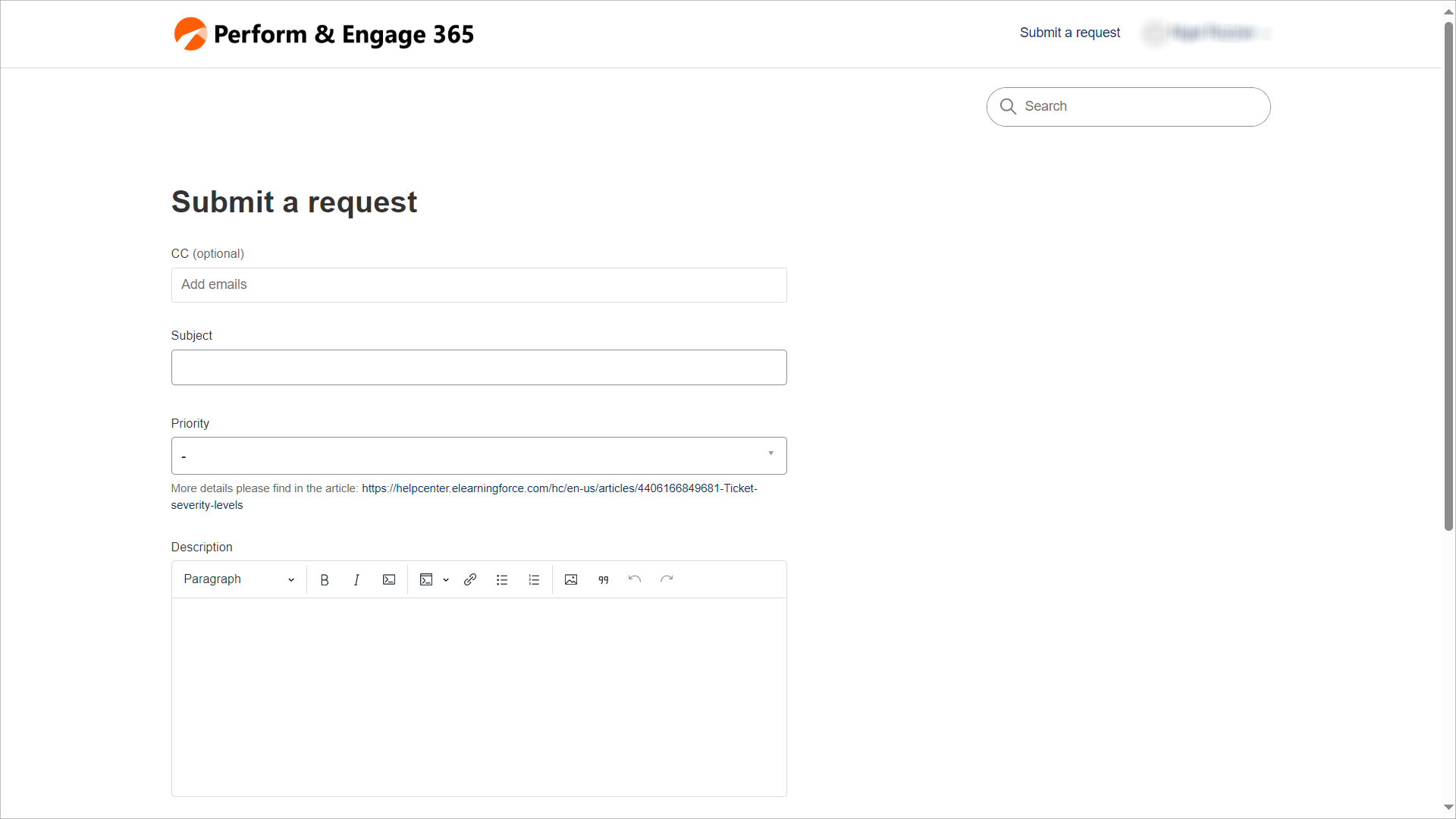 If you encounter any challenges when using Perform & Engage 365 and can't find answers to your questions here in the Perform & Engage 365 Help Center, you can submit a request to Zensai Product Support.