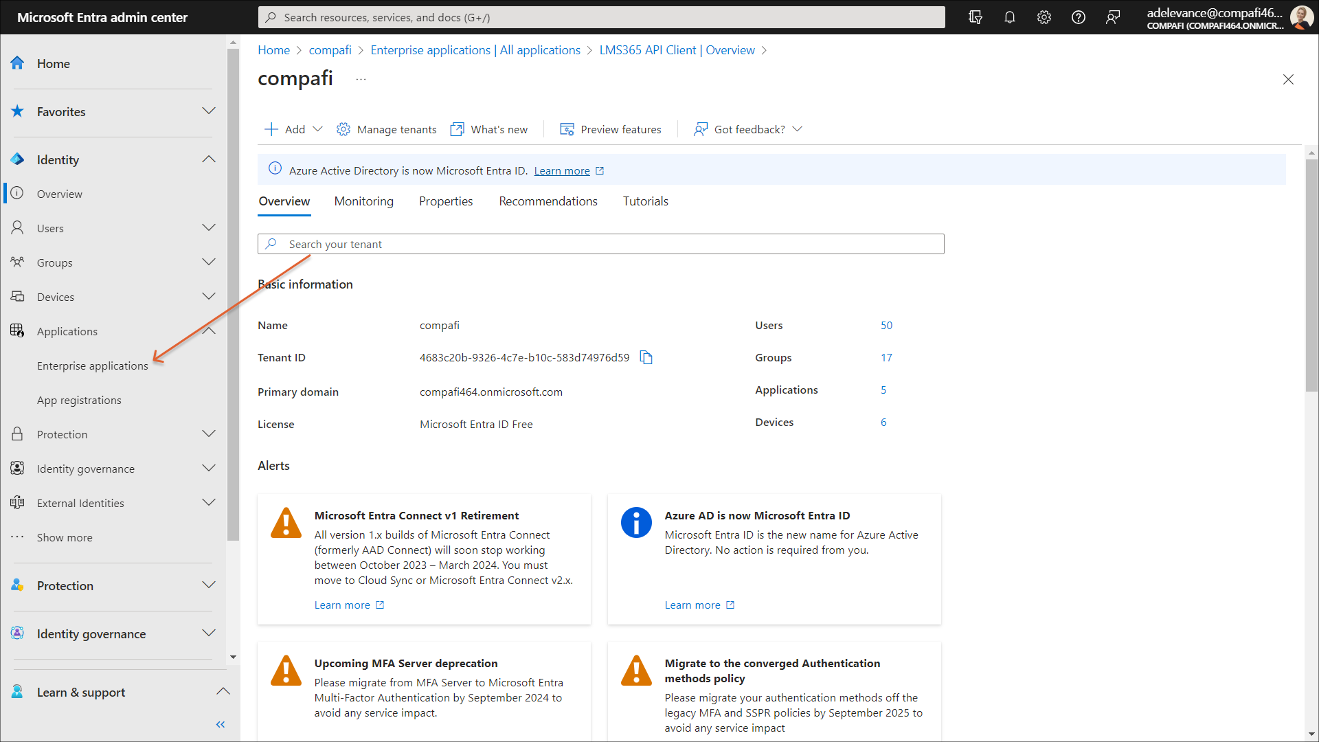 1. In the Microsoft Entra admin center, go to Enterprise applications. The All applications page will open.