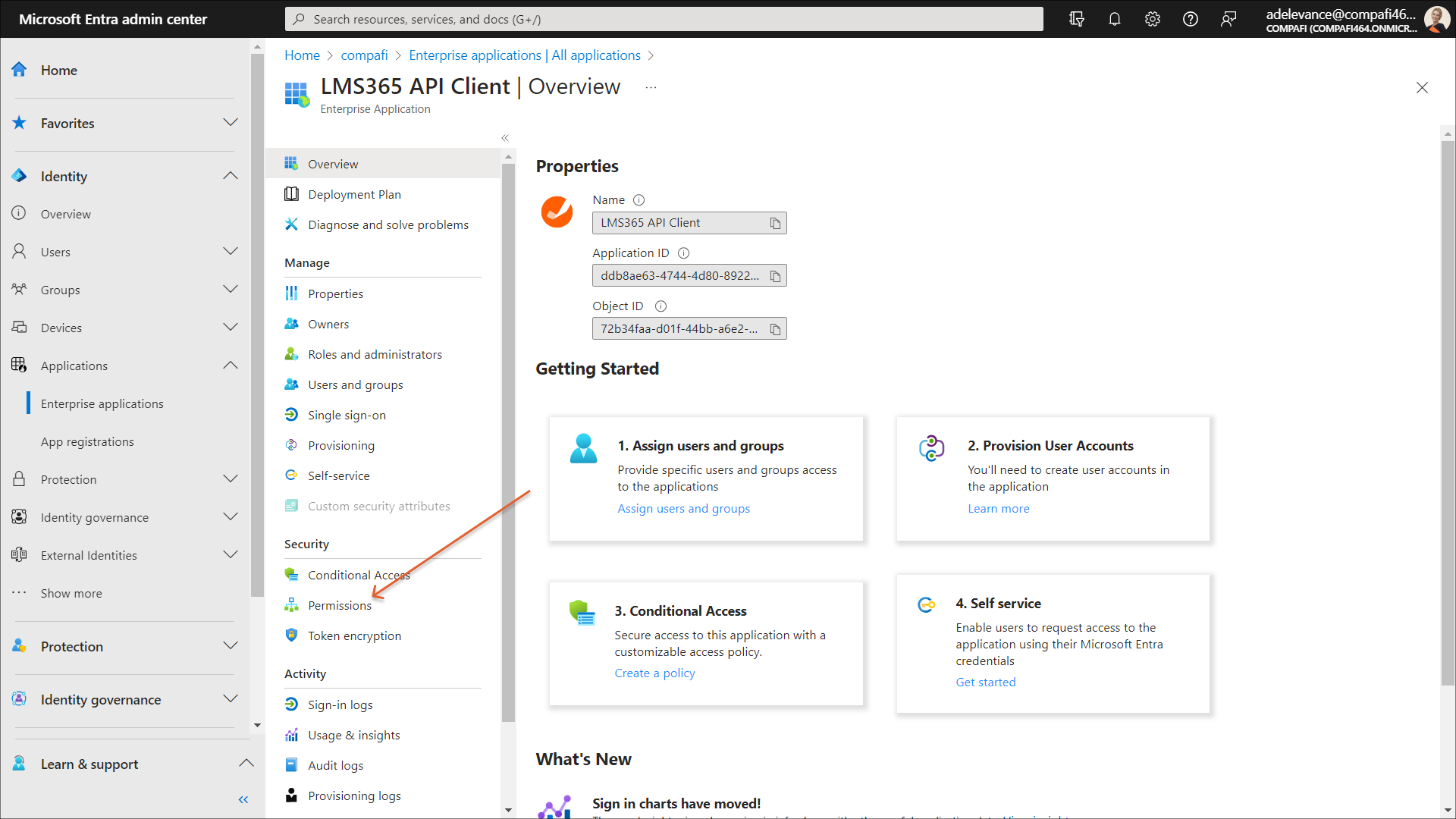 3. On the left-side navigation menu, select Permissions.