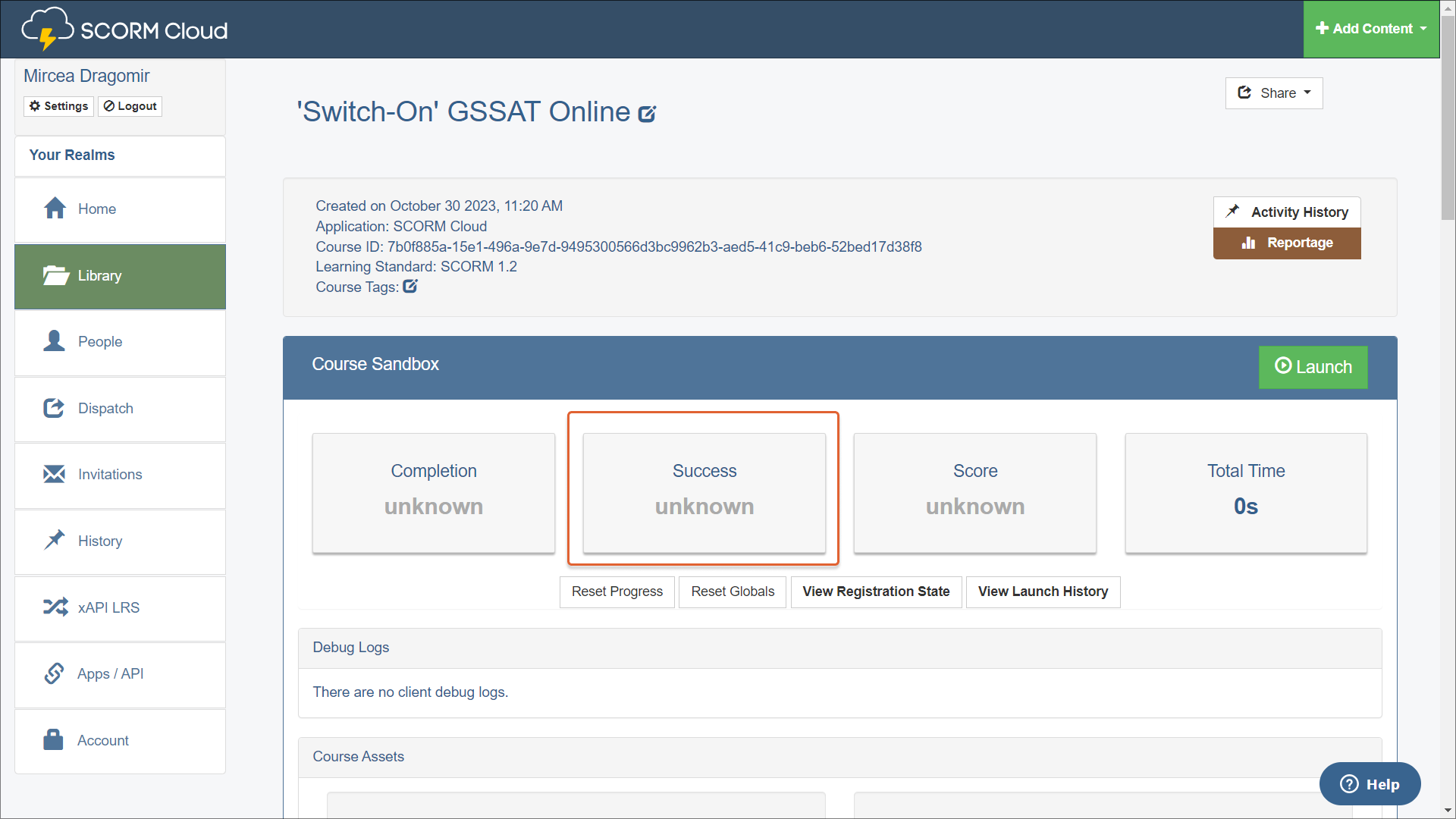 3. Check the Success status of the uploaded SCORM. If the Success status is unknown, then the system indicates that the SCORM package is unlikely to work correctly or it won't work at all. In this case, you should contact the content package vendor for further advice.