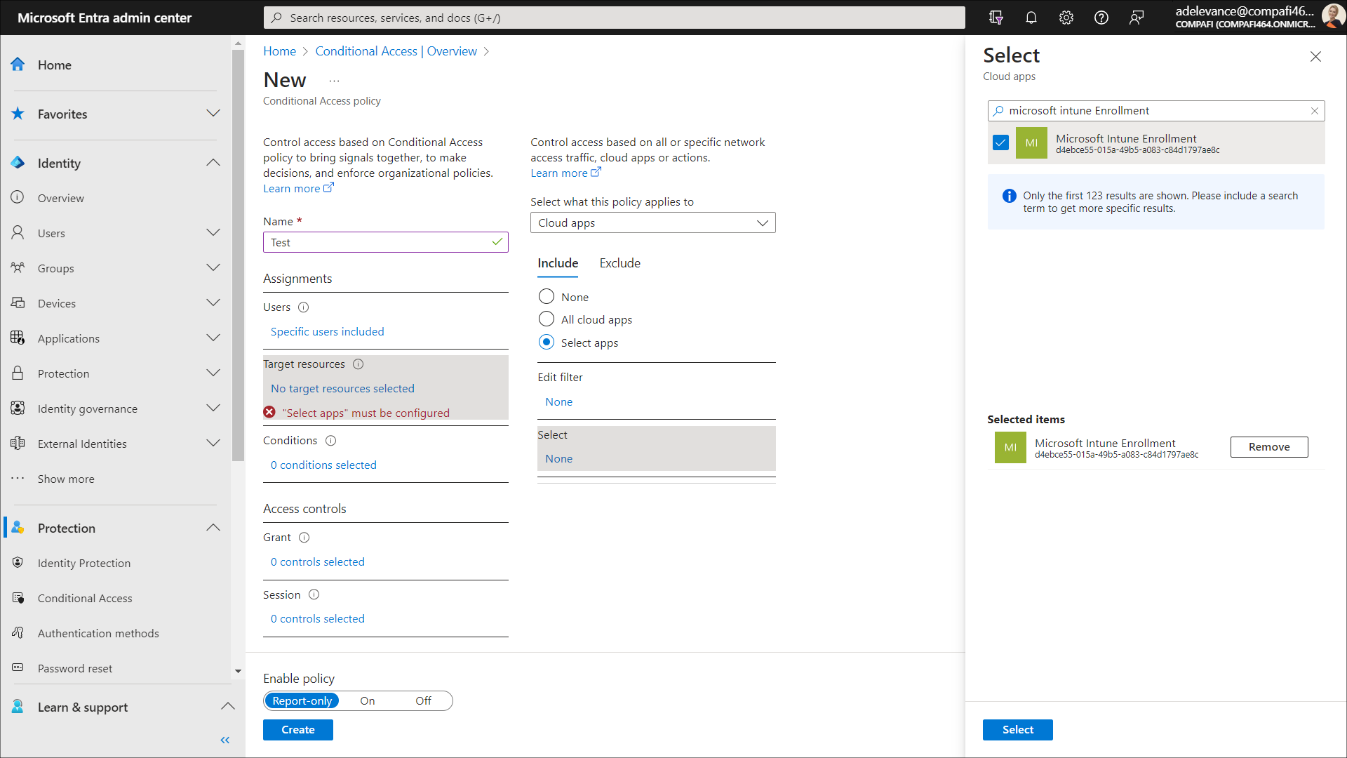 Under Cloud apps or actions, you control access based on all or specific cloud apps or actions.