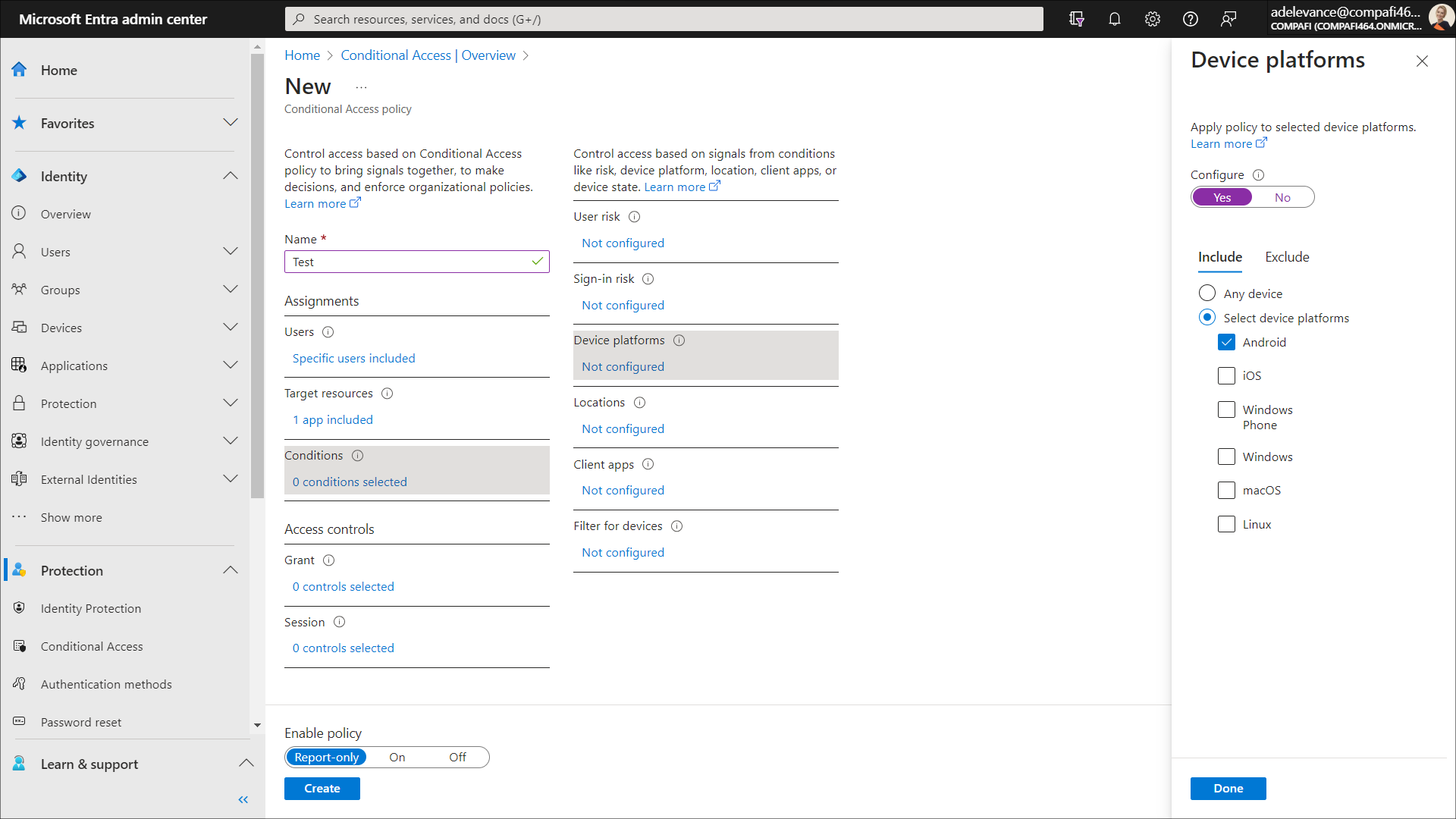 1. Select Conditions > Device platforms to configure specific platforms to which you want to apply the policy. This opens the Device platforms panel.