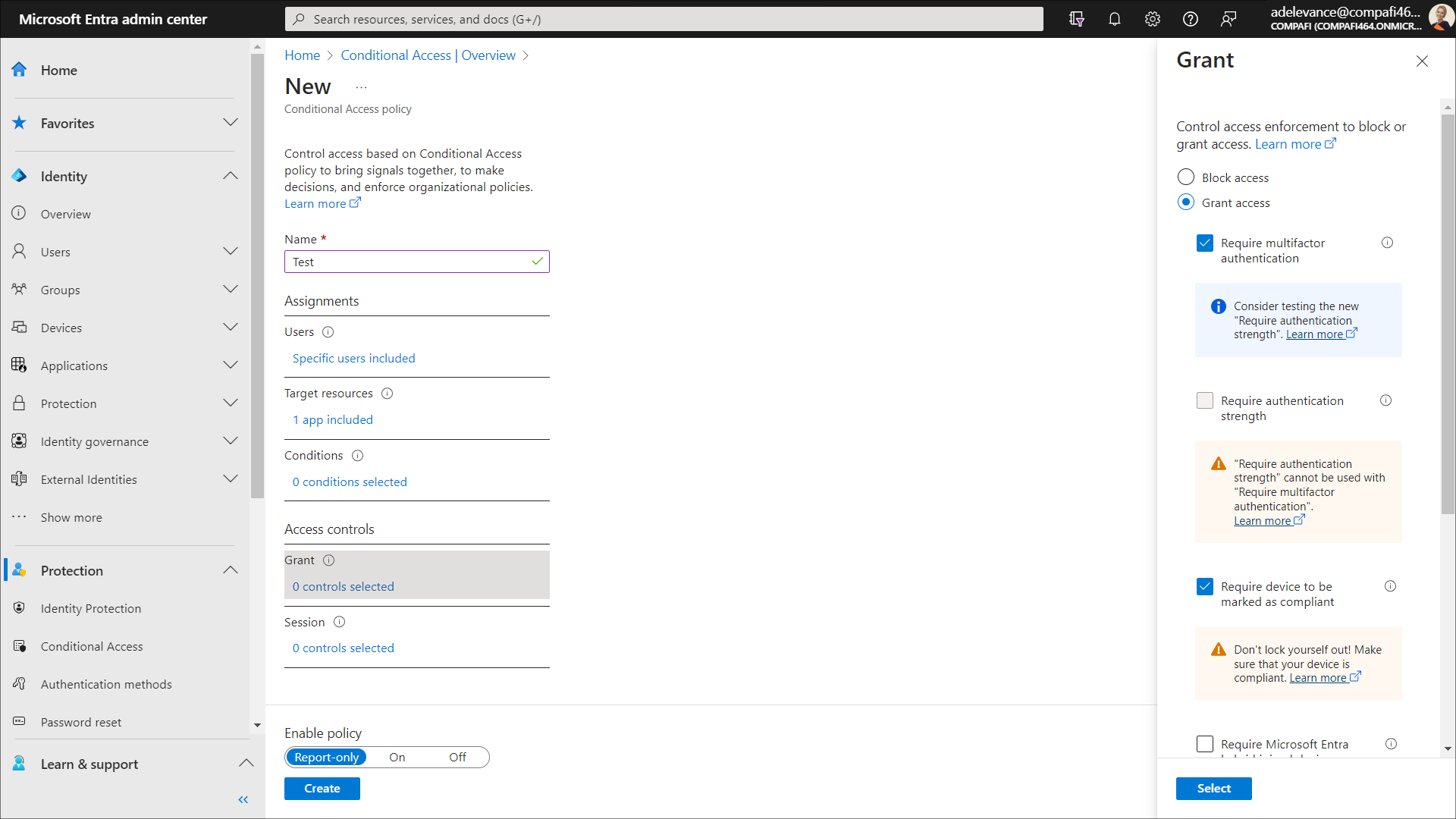 In the Grant section, choose whether you want to block access or select additional requirements that need to be satisfied to enable access. For this, follow these steps: