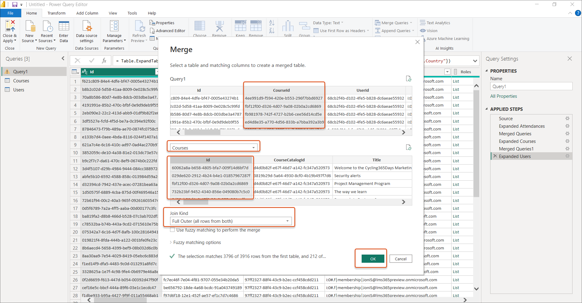 - From the Join Kind drop-down list, select Full Outer (all rows from both).