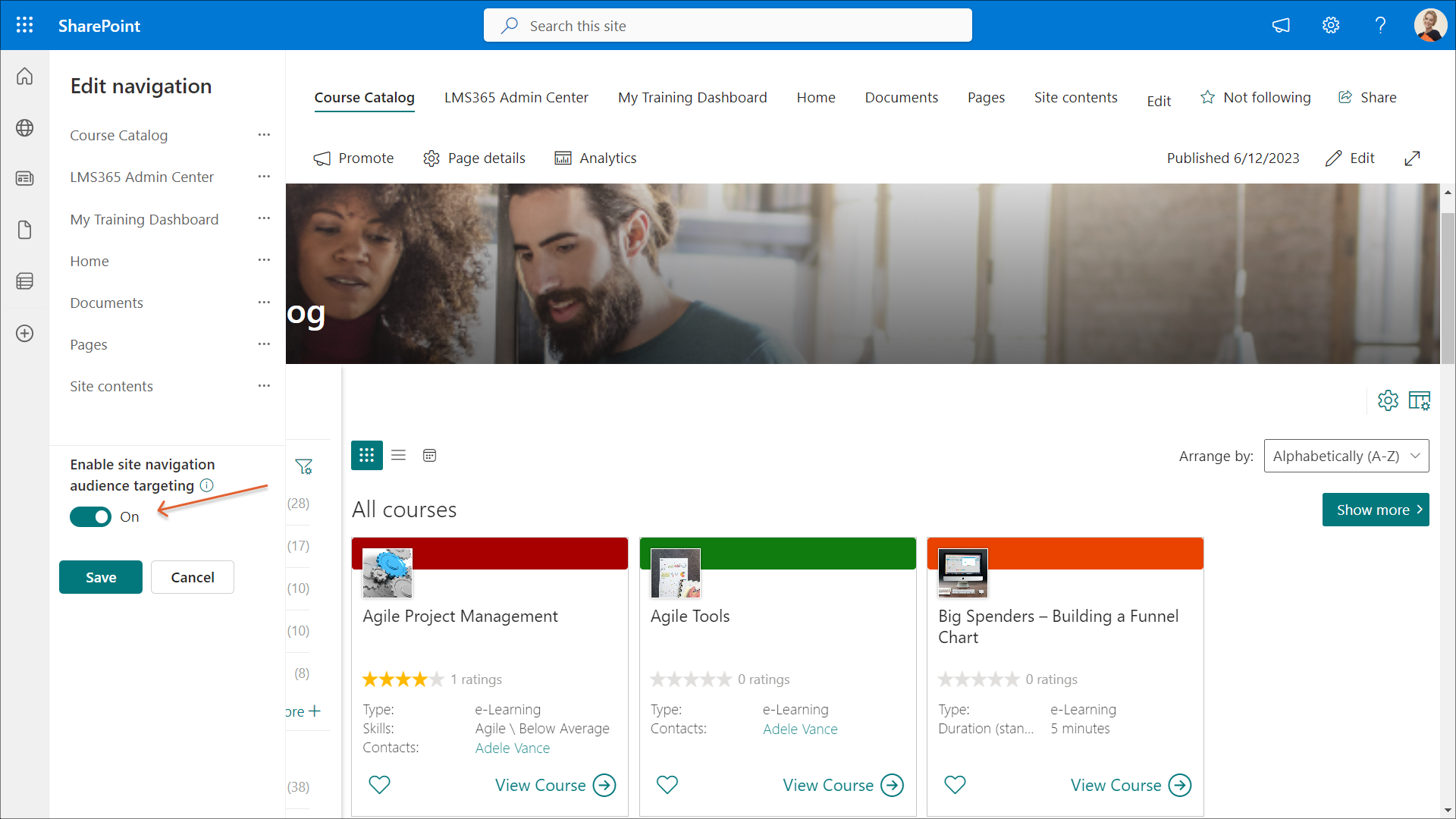 In this article, we describe how you can add a link that enables admins to navigate to the Learn365 Admin Center from the site navigation of a course catalog's SharePoint site.