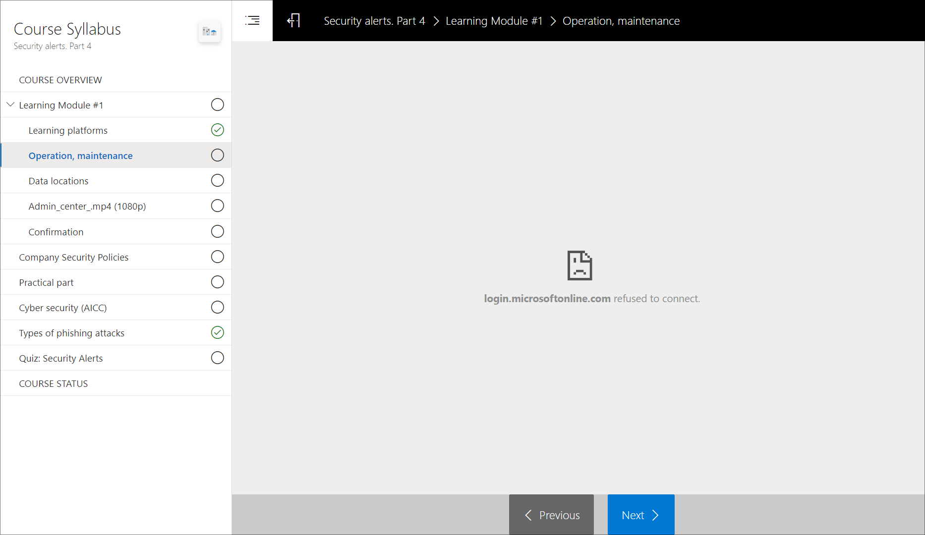 While taking training in the Learn365 player, learners may encounter the "[site].com refused to connect" issue instead of the content to go through, as in the image below.