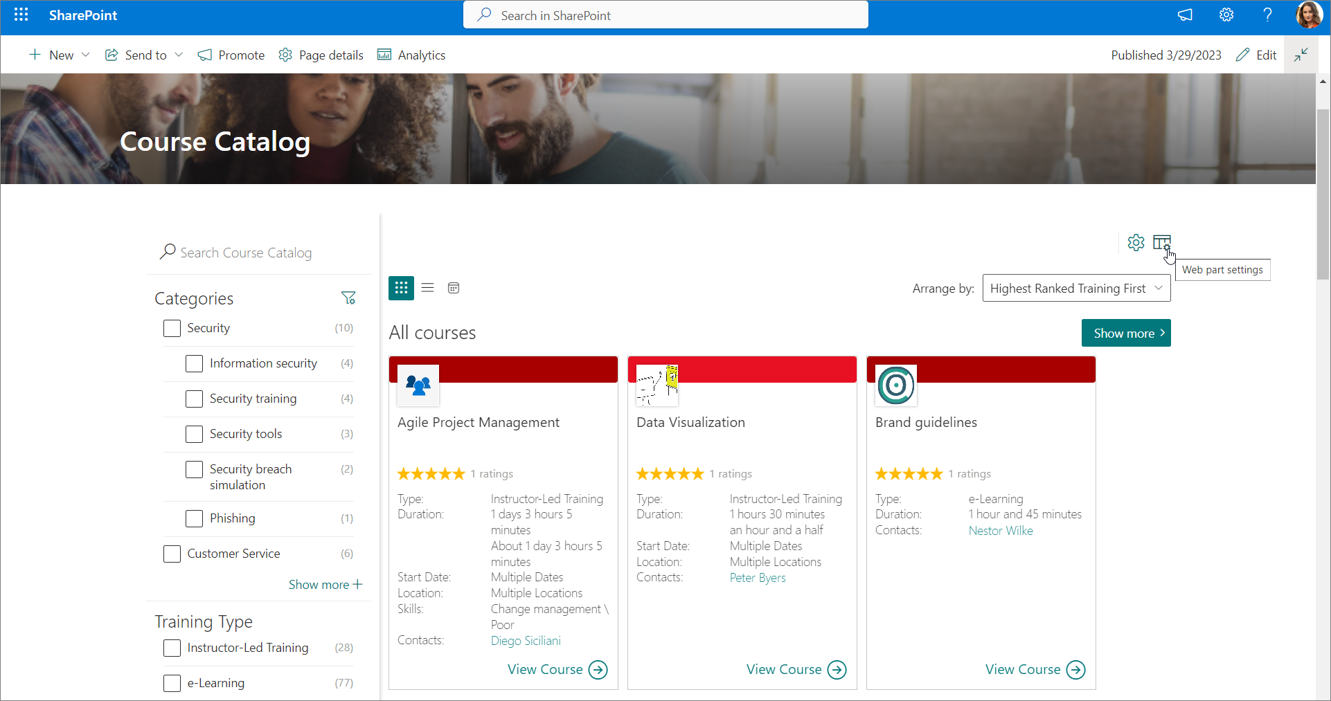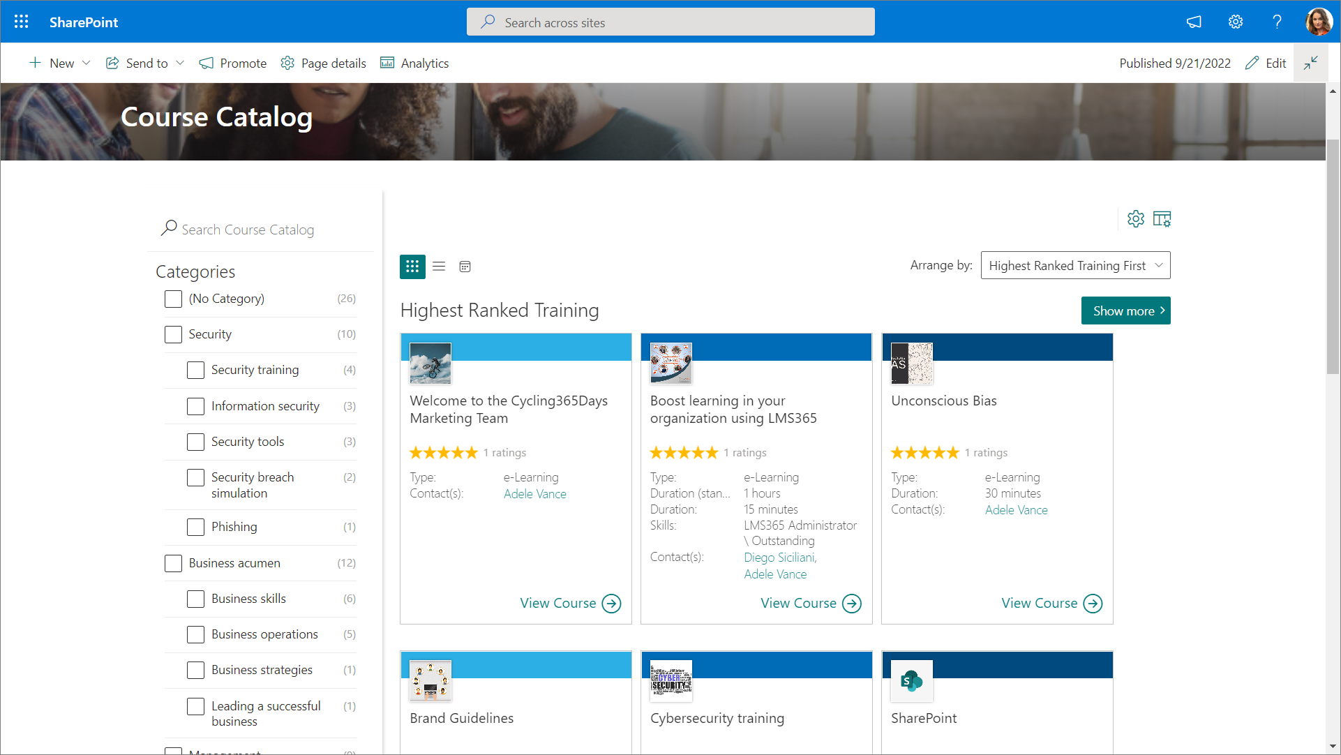 To apply the customizations to cards on the course catalog page in SharePoint: