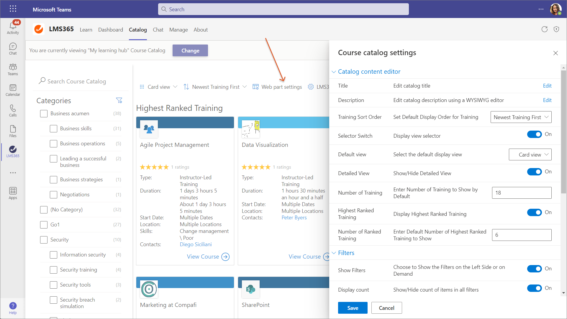 6. Select Save on the Course catalog settings panel to apply the changes.