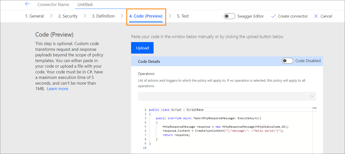Find more information in Microsoft's documentation on how to create a custom connector from scratch.